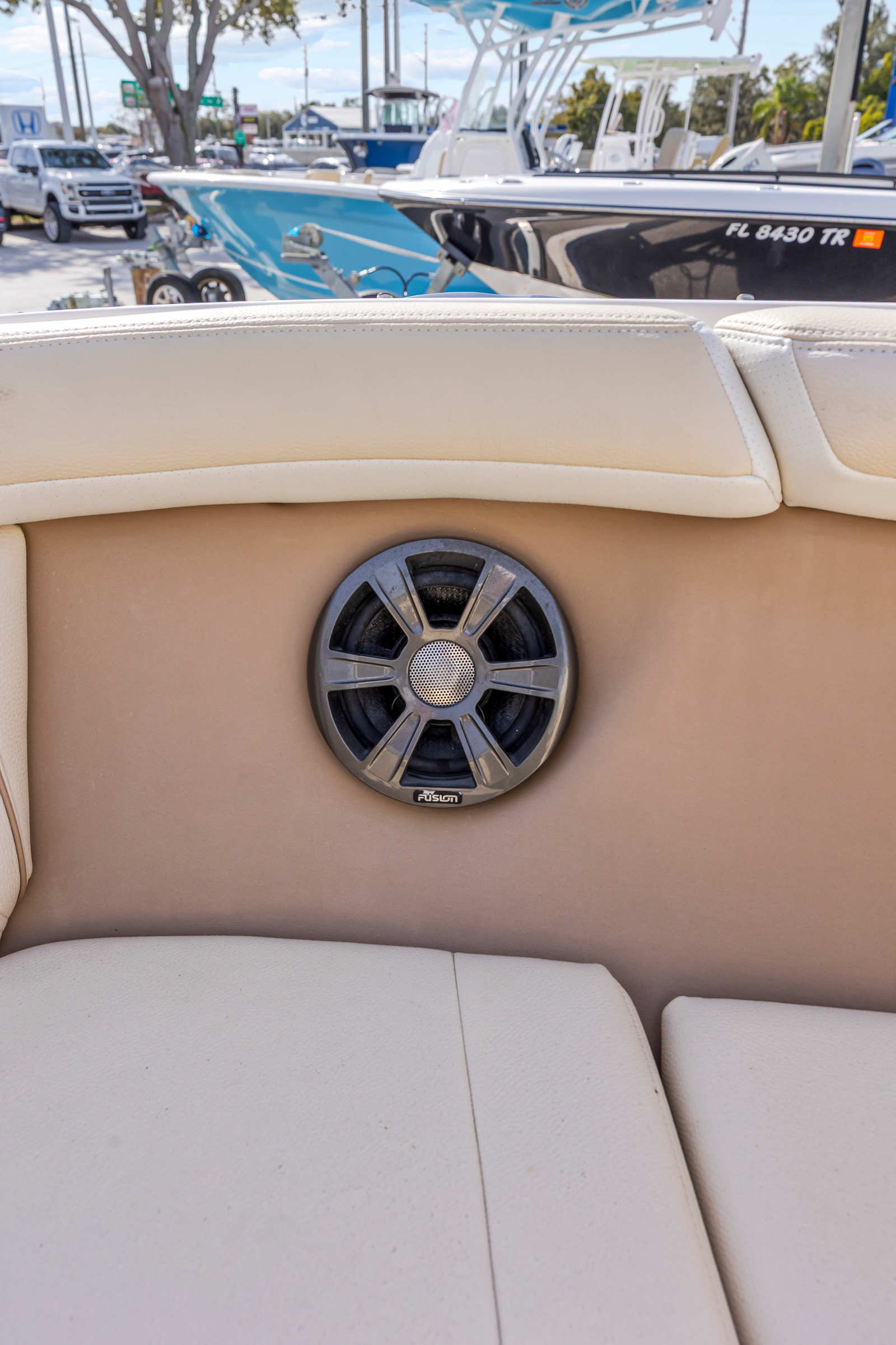 Powered by a single engine with 150 horsepower and only 160 engine hours, the Regal 21 OBX offers a dynamic and responsive ride. The outboard engine configuration ensures smooth acceleration, reliable performance, and efficient fuel consumption, allowing you to spend more time on the water and less time at the pump. Whether you are cruising along the shoreline, towing water toys, or exploring new destinations, this bowrider boat for sale delivers the power and agility you need for a wide range of activities. The 150-horsepower engine provides plenty of thrust for water sports and quick getaways, while the efficient design keeps operating costs in check.