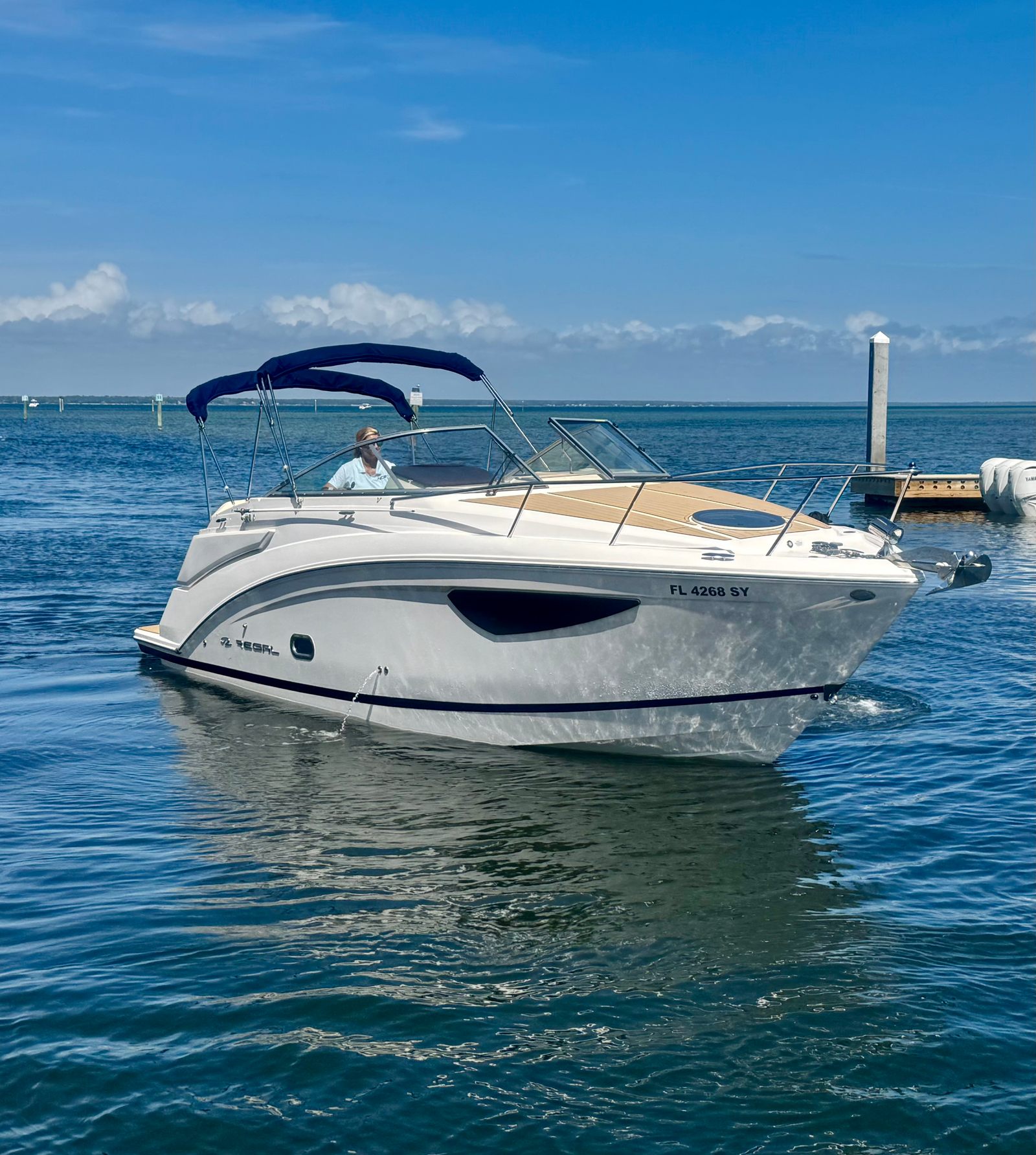 The spacious cockpit is perfect for entertaining, while the well-appointed and tasteful cabin includes a galley, head, and sleeping accommodations for overnight trips. Premium finishes, smart storage, and Regal’s signature attention to detail make this boat a standout. Ideal for weekend getaways or day cruising, she's ready to make memories with a new home.
