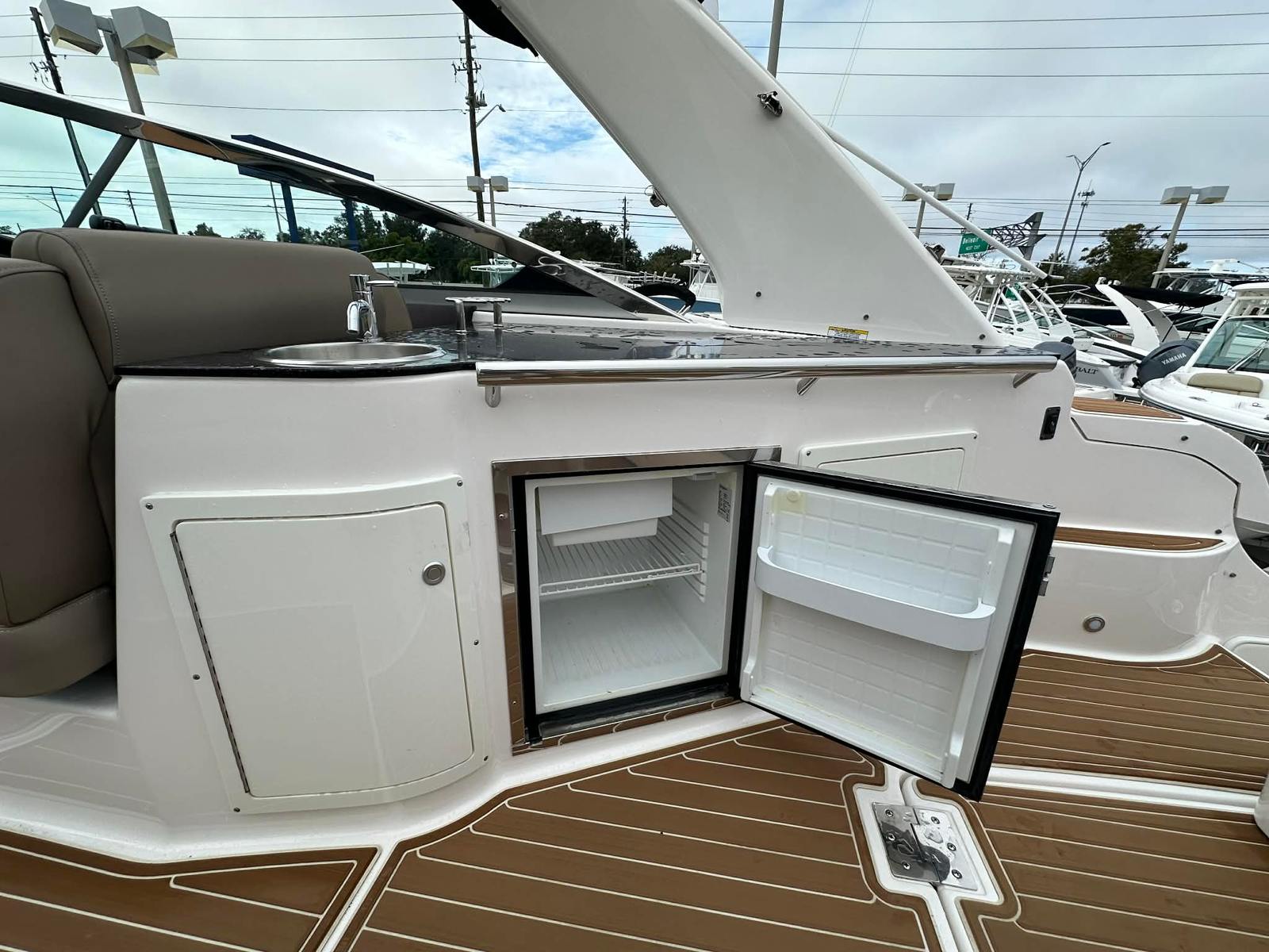 In addition to its recreational appeal, the Regal 32 Express offers a range of practical benefits that make ownership a breeze. The ample storage space ensures that all your essentials are within easy reach, while the efficient layout makes it simple to keep the boat organized and clutter-free. Docking is made easier thanks to the responsive handling provided by the twin engines, allowing you to maneuver confidently in tight spaces.Fuel efficiency is another advantage of this model, allowing you to spend more time on the water and less time at the fuel dock. The durable construction and quality materials used throughout the boat ensure long-lasting performance and low maintenance, giving you more freedom to enjoy your time on the water. Whether you are a weekend warrior or a dedicated cruiser, the Regal 32 Express is designed to make every outing as enjoyable and hassle-free as possible.