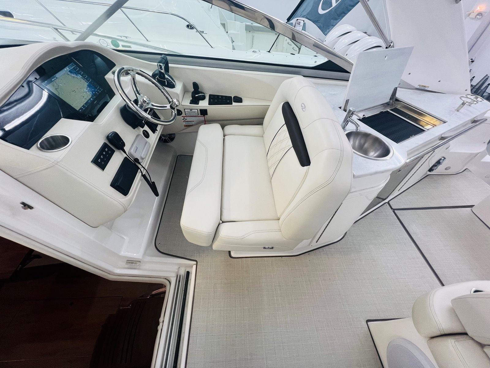 Powering the Regal 33 XO are two robust engines, delivering a combined 600 horsepower. This dynamic setup ensures exhilarating acceleration, smooth cruising, and reliable handling in a variety of water conditions. Whether you’re navigating coastal waters or exploring inland lakes, the 33 XO’s twin-engine configuration offers the perfect balance of speed and control. The advanced engineering behind Regal’s propulsion system means you can enjoy efficient fuel consumption and responsive maneuverability, making every journey both thrilling and economical.