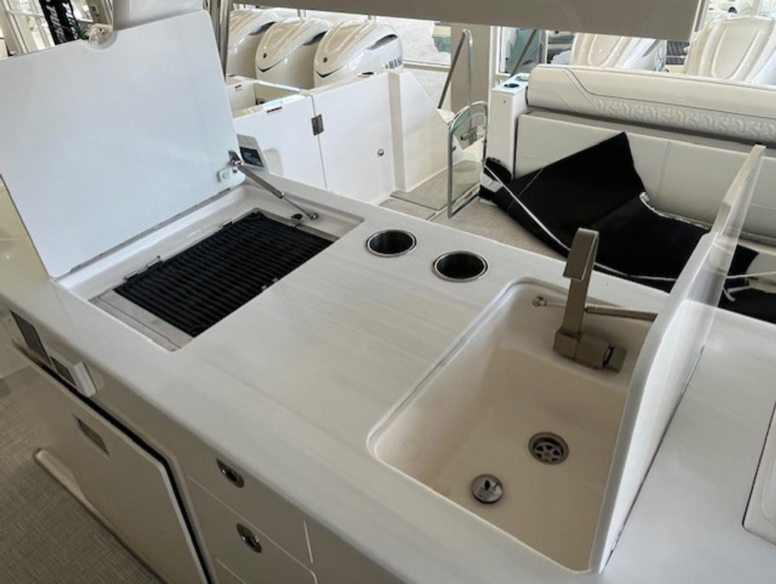 Power and precision come together seamlessly in the Regal 38 SAV, thanks to its triple Yamaha 350HP engines with integrated steering, finished in a sophisticated white. With a combined 1,050 horsepower at your fingertips, this yacht delivers exhilarating speed, smooth handling, and exceptional maneuverability. The integrated steering system enhances control, making docking and navigating tight spaces effortless. Whether you are cruising along the coastline or heading out for a day of offshore adventure, the 38 SAV’s performance capabilities ensure a thrilling and reliable ride every time.