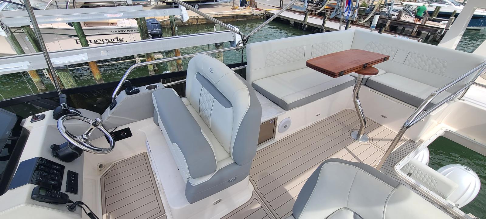 Powering the Regal 42 FXO are three robust engines, delivering a combined 1275 horsepower. With only 150 engine hours, this used yacht is in excellent condition and ready for many more adventures. The triple engine setup ensures smooth acceleration, impressive top speeds, and reliable handling in a variety of conditions. Whether you’re cruising along the coastline or heading out for a weekend getaway, the Regal 42 FXO offers the kind of performance that makes every journey memorable. The advanced engineering behind this yacht guarantees a responsive ride, excellent maneuverability, and the confidence to tackle both calm waters and challenging seas.