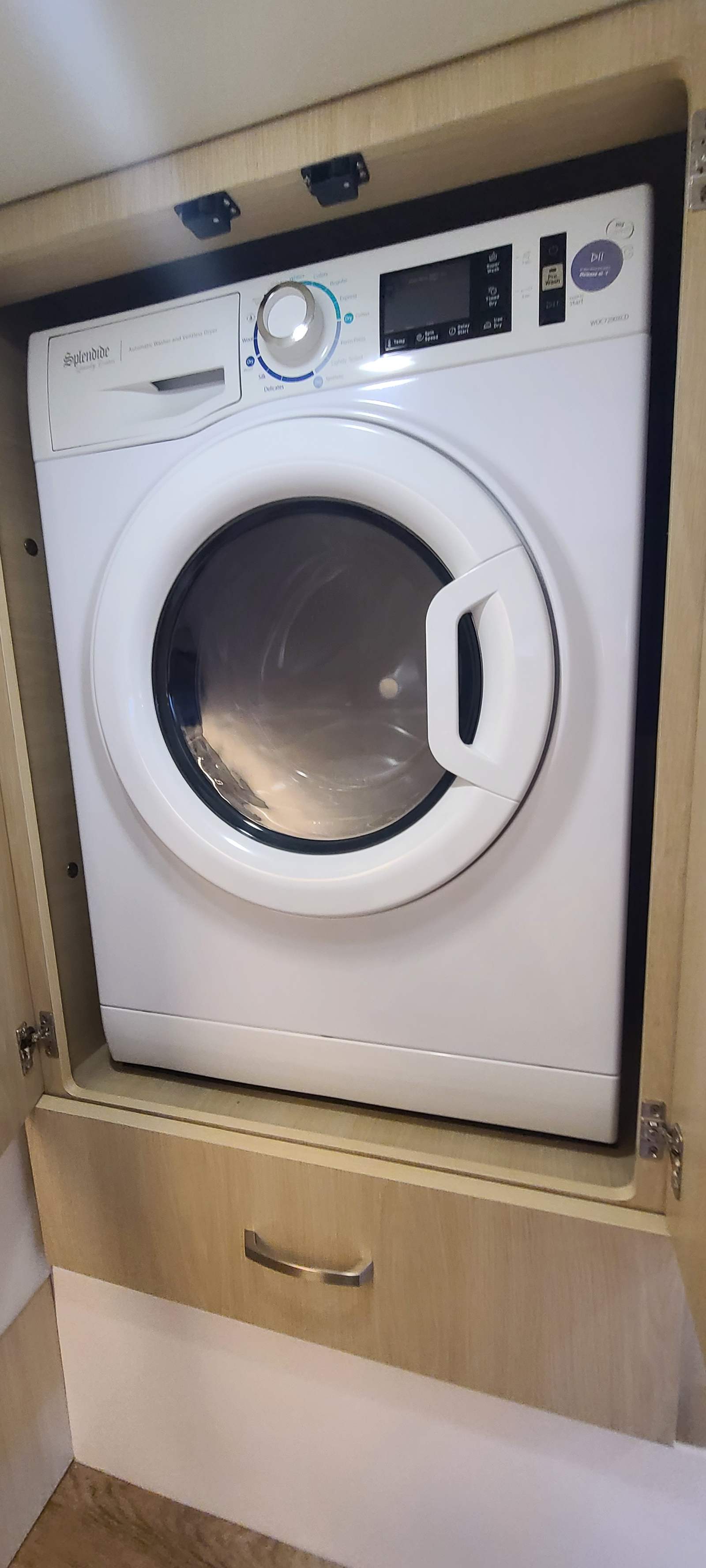 Twin Garmin 22 inch screens, VHF Radio, Radar, Auto Pilot, LED Trim Indicator, Fusion stereo system, Sat TV, Fridge freezer option, two burner stove, Washer Dryer combo, Two head stateroom configuration with one having the walk-in shower.