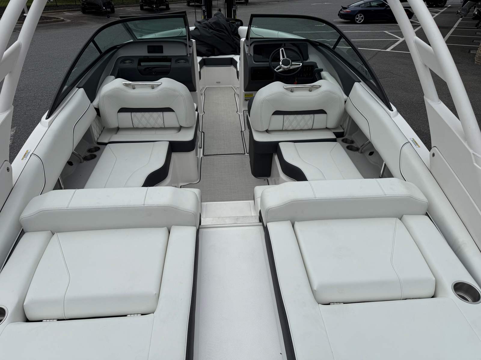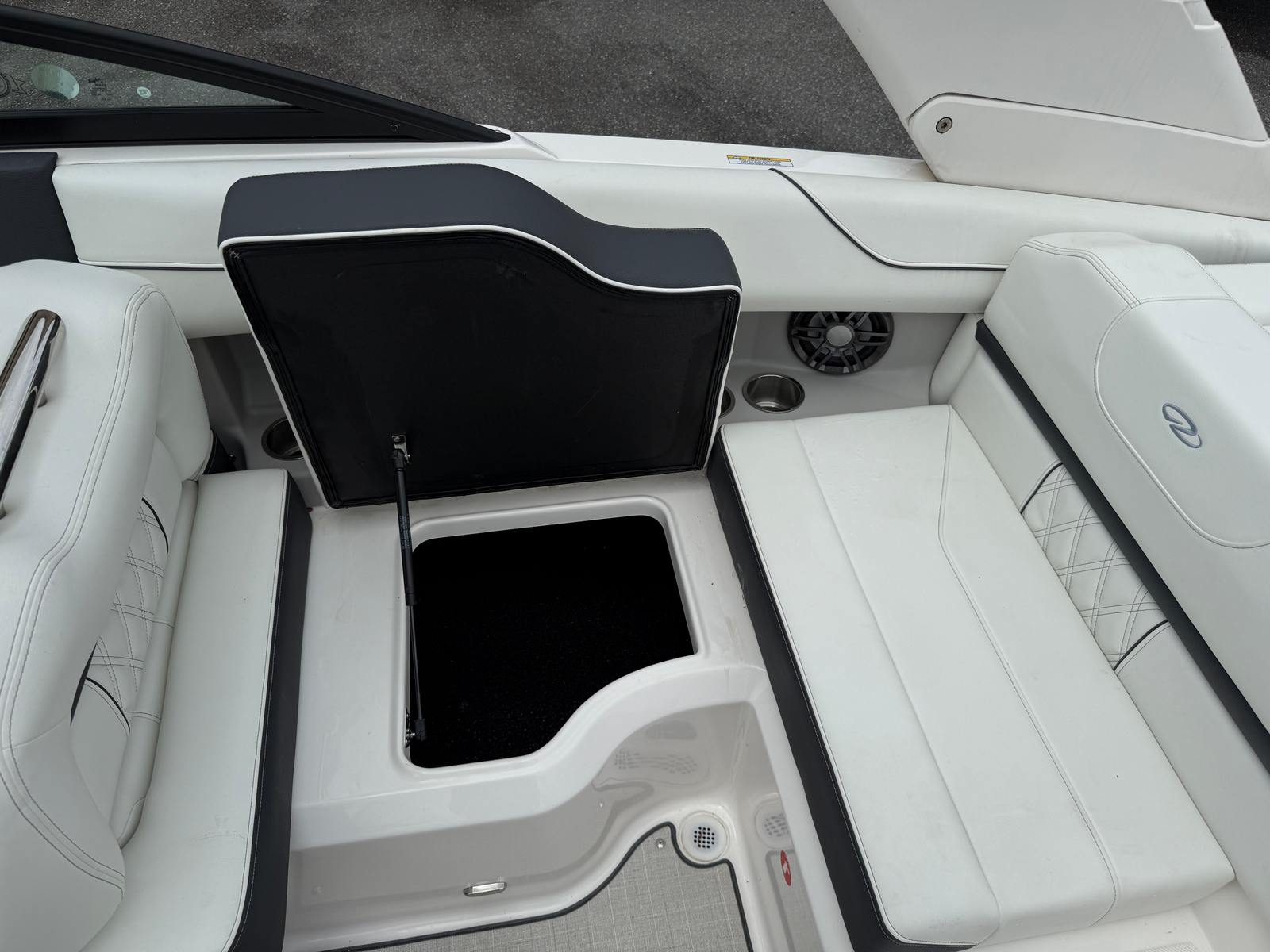 The Regal LS2 LTD Bowrider is packed with premium features designed to enhance your boating experience. Step into the cockpit and enjoy the comfort of the Seagrass Mat, which offers a plush, non-slip surface that’s both stylish and practical. The Newport Blue canvas provides shade and protection, while the Titanium accents elevate the boat’s modern look. Navigation is a breeze thanks to the Dual Garmin 743 displays, giving you access to advanced charts, GPS, and system monitoring at your fingertips.The boat’s bottom color, Tahiti Beach White, pairs beautifully with the Newport Blue hull, creating a visually stunning profile. The bootstripe matches the bottom color for a cohesive and elegant appearance. Practicality is built in with the Dual Battery Switch, tray, and cables, ensuring reliable power management and peace of mind during longer outings. The innovative PowerTower S2 in white adds versatility, allowing you to easily adjust the tower for watersports or storage.