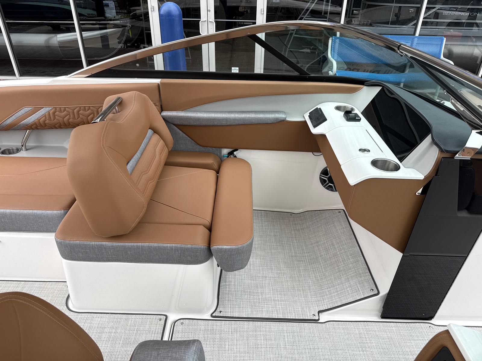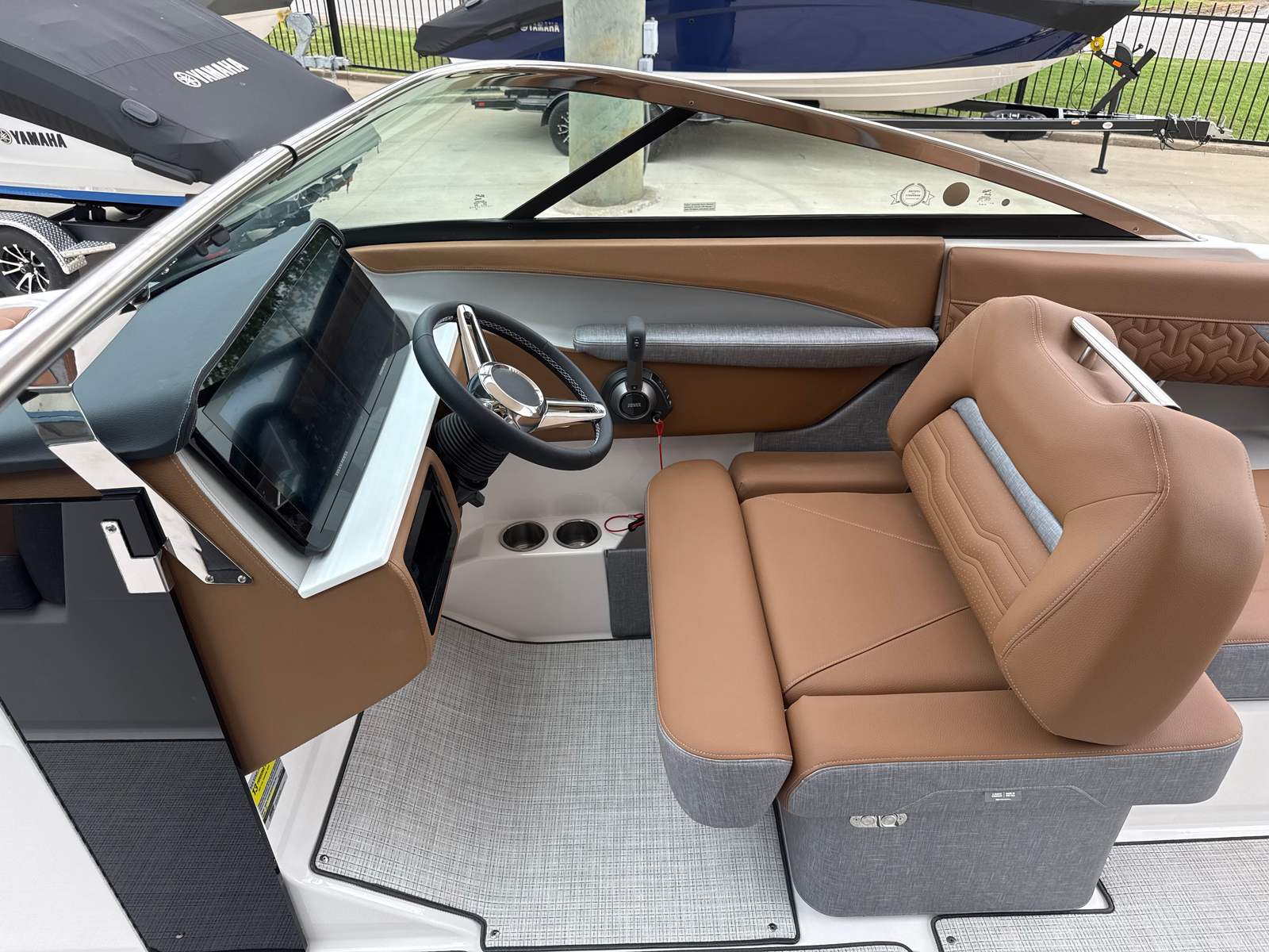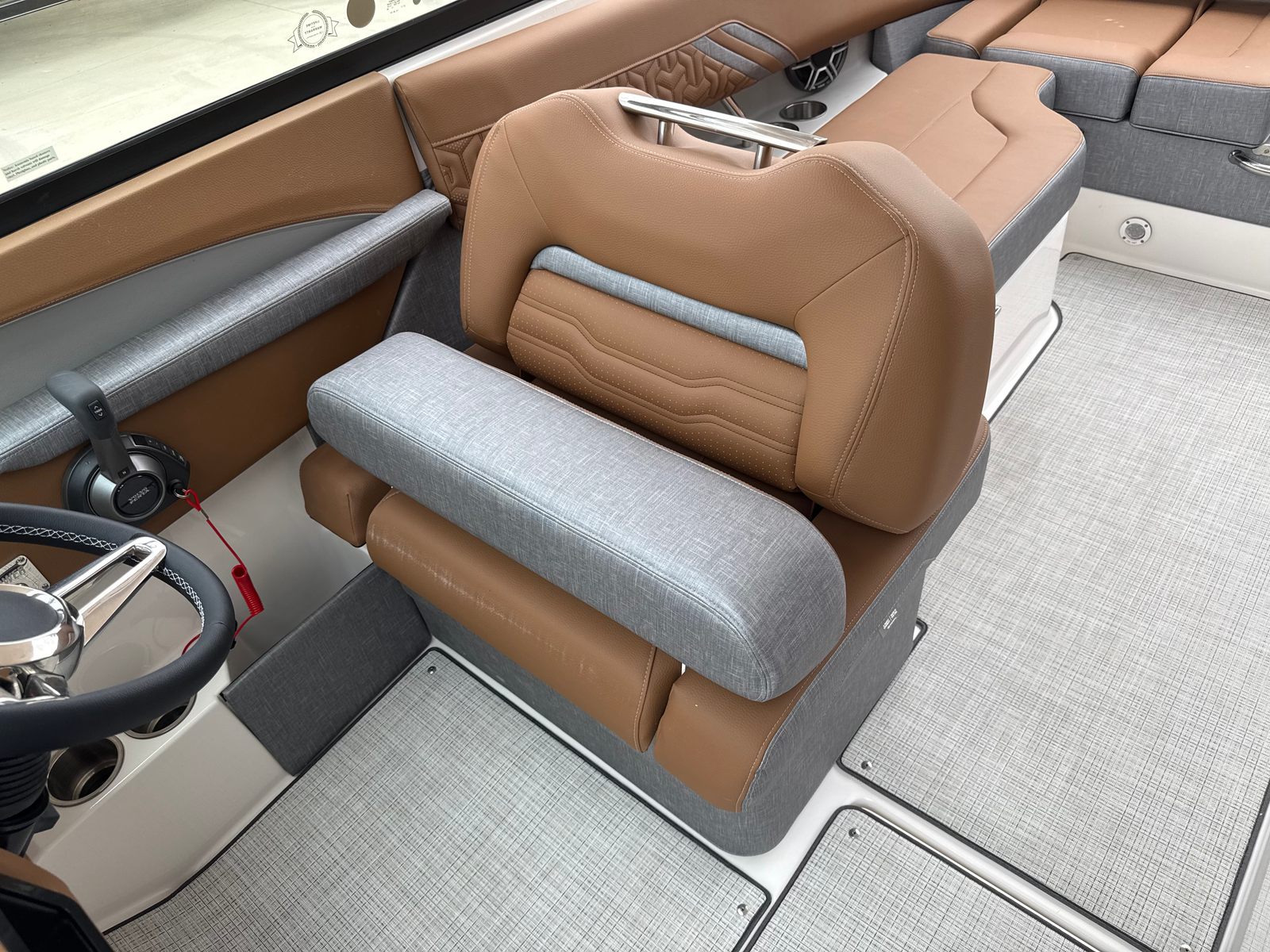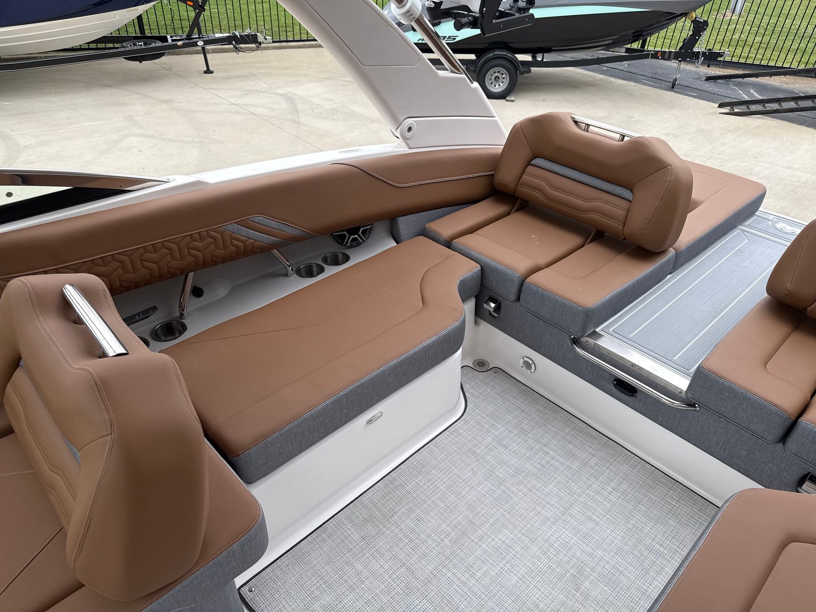 Step aboard the LS4 Surf and you are greeted by a world of comfort and style. The interior is a masterpiece of design, featuring a sophisticated blend of Saddle Brown, Denim Cement, and additional Saddle Brown accents. This unique color palette creates a warm, inviting atmosphere that is both modern and timeless. The cockpit is outfitted with a premium Seagrass Mat, offering a soft, non-slip surface that is perfect for barefoot comfort and easy cleaning after a day on the water.The SeaDek Swim Platform is another standout feature, providing a safe, cushioned area for swimmers and water sports enthusiasts to gear up or relax by the water’s edge. Digital Switching technology brings convenience to your fingertips, allowing you to control onboard systems with ease and precision. The included travel storage cover helps protect your investment from the elements, ensuring your LS4 Surf remains in pristine condition season after season.