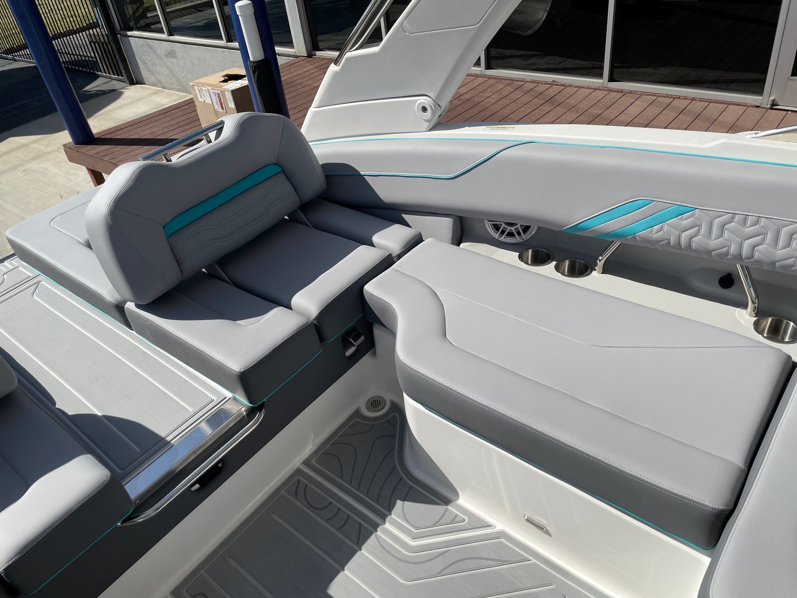 Practicality is at the heart of the Regal LS4 Surf’s design. The travel storage cover helps keep your boat in pristine condition, protecting it from the elements during transport or storage. The SeaDek cockpit sole not only enhances comfort but also makes cleaning and maintenance a breeze. The boat’s length and single-engine configuration make docking and maneuvering straightforward, even for less experienced boaters.The LS4 Surf’s layout offers plenty of space for storing gear, water toys, and personal items, ensuring that everything you need for a day on the water is within easy reach. The combination of style, performance, and thoughtful features makes this bowrider boat for sale an excellent choice for those who value both form and function.