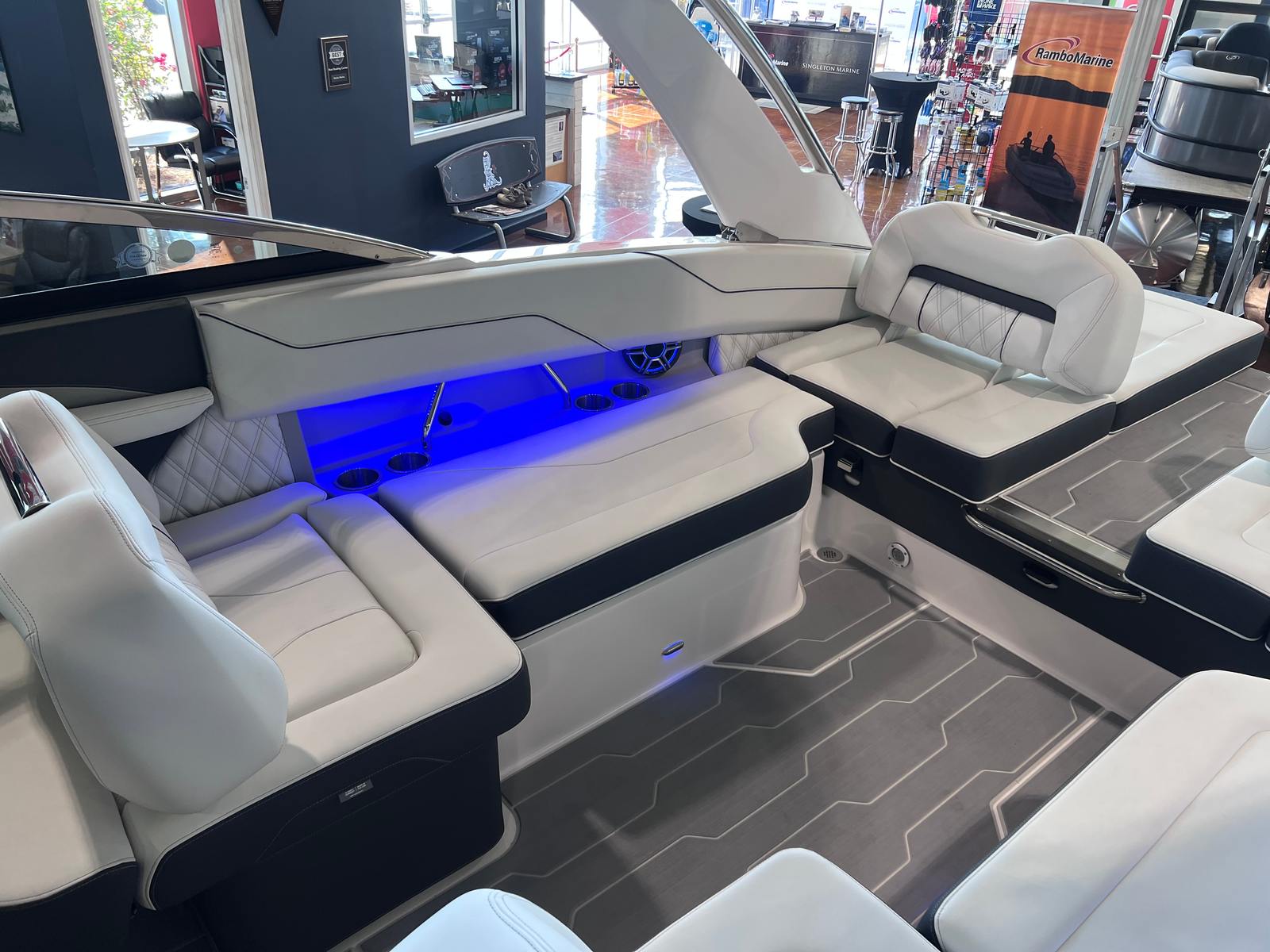 Owning the Regal LS4 Surf means embracing a lifestyle of fun, relaxation, and unforgettable memories. The spacious bowrider layout invites friends and family to spread out and enjoy the ride, while the plush seating and open design create a welcoming atmosphere for socializing. The SeaDek surfaces enhance comfort and safety, making it easy to transition from lounging to swimming or wakeboarding.This bowrider boat for sale is designed for versatility, allowing you to switch seamlessly between cruising, water sports, and entertaining. The powerful Volvo V8 engine provides the muscle you need for towing, while the advanced hull design ensures a smooth, dry ride even in choppy conditions. Every detail of the LS4 Surf is crafted to enhance your time on the water, from the stylish exterior to the thoughtfully designed cockpit.
