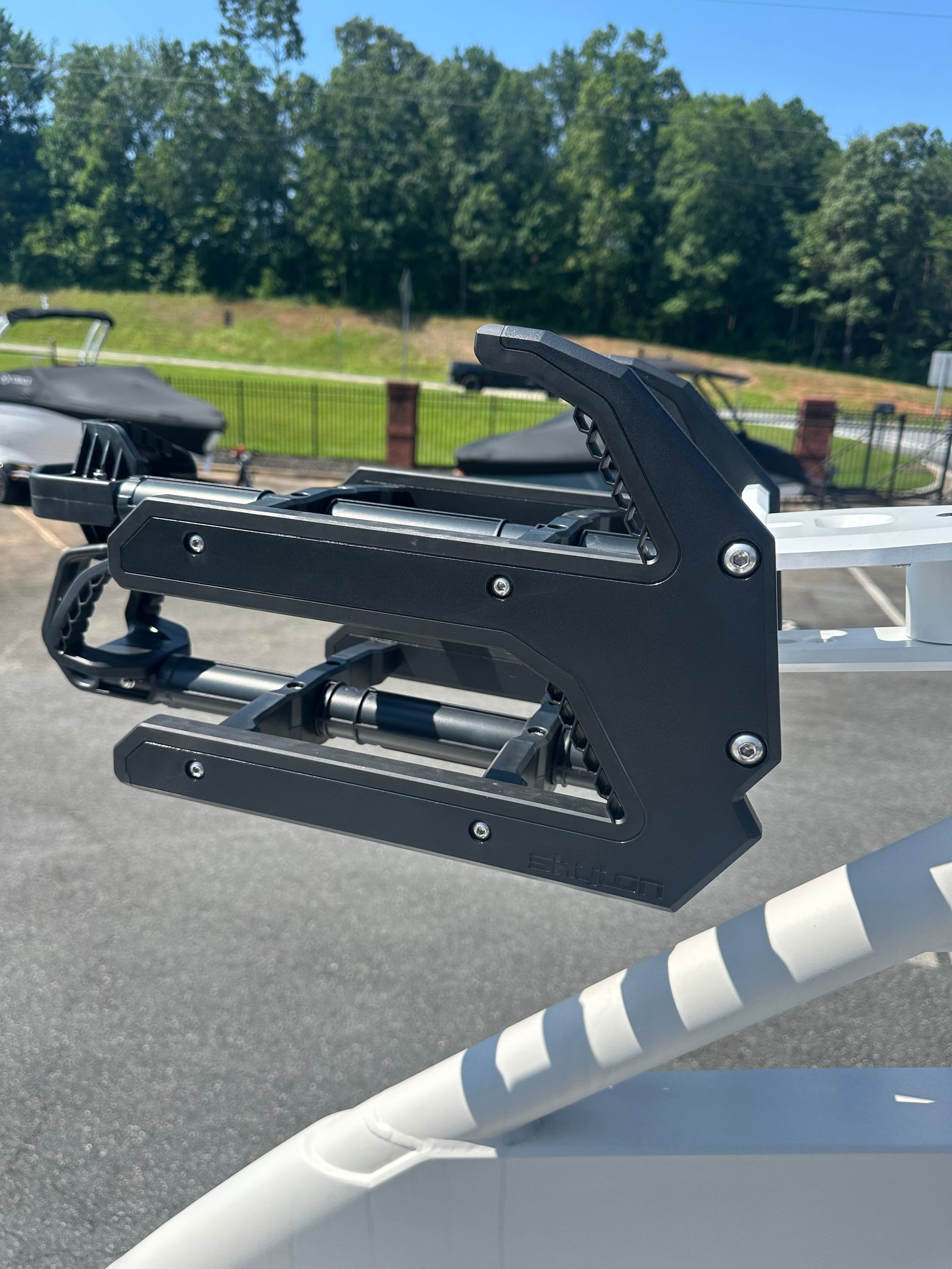 The 2025 Regal LS4 Surf is packed with premium features that set it apart from other bowrider boats for sale. Enjoy peace of mind with the included Travel Storage Cover (Black), which protects your investment during transport and storage. The onboard Battery Charger keeps your electrical systems ready for action, while the Zone 4 - Pure White - Standard and Zone 1 - Graphite - Chil interior zones create a stylish and comfortable environment for passengers. The Stereo Performance & Lighting Package delivers immersive sound and vibrant lighting, transforming every outing into a celebration. The innovative PowerTower S2 - White adds versatility and convenience, making it easy to stow your wakeboard racks and gear. Dedicated Wake Board Racks keep your equipment organized and accessible, while the stainless steel flag pole with U.S. flag adds a touch of patriotic flair. The LS4 Surf’s Graphite hull color not only enhances its visual appeal but also reflects Regal’s commitment to quality and style.