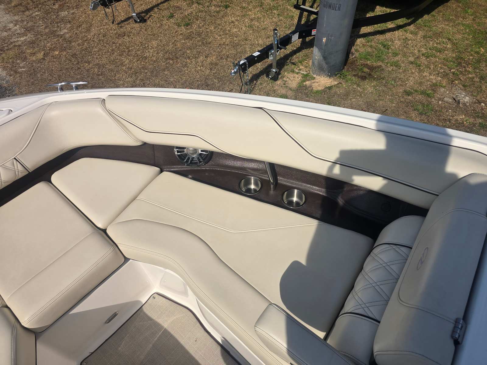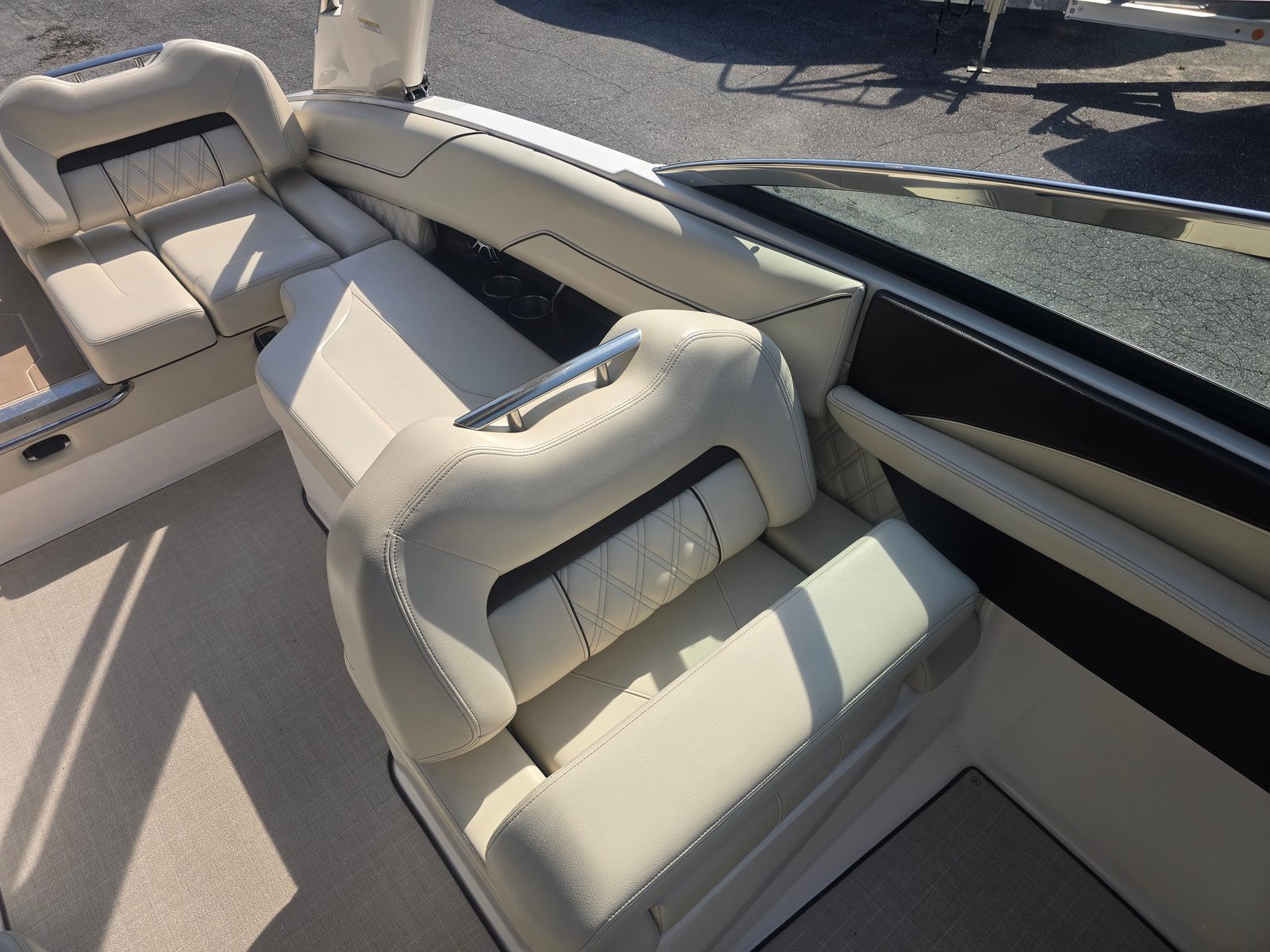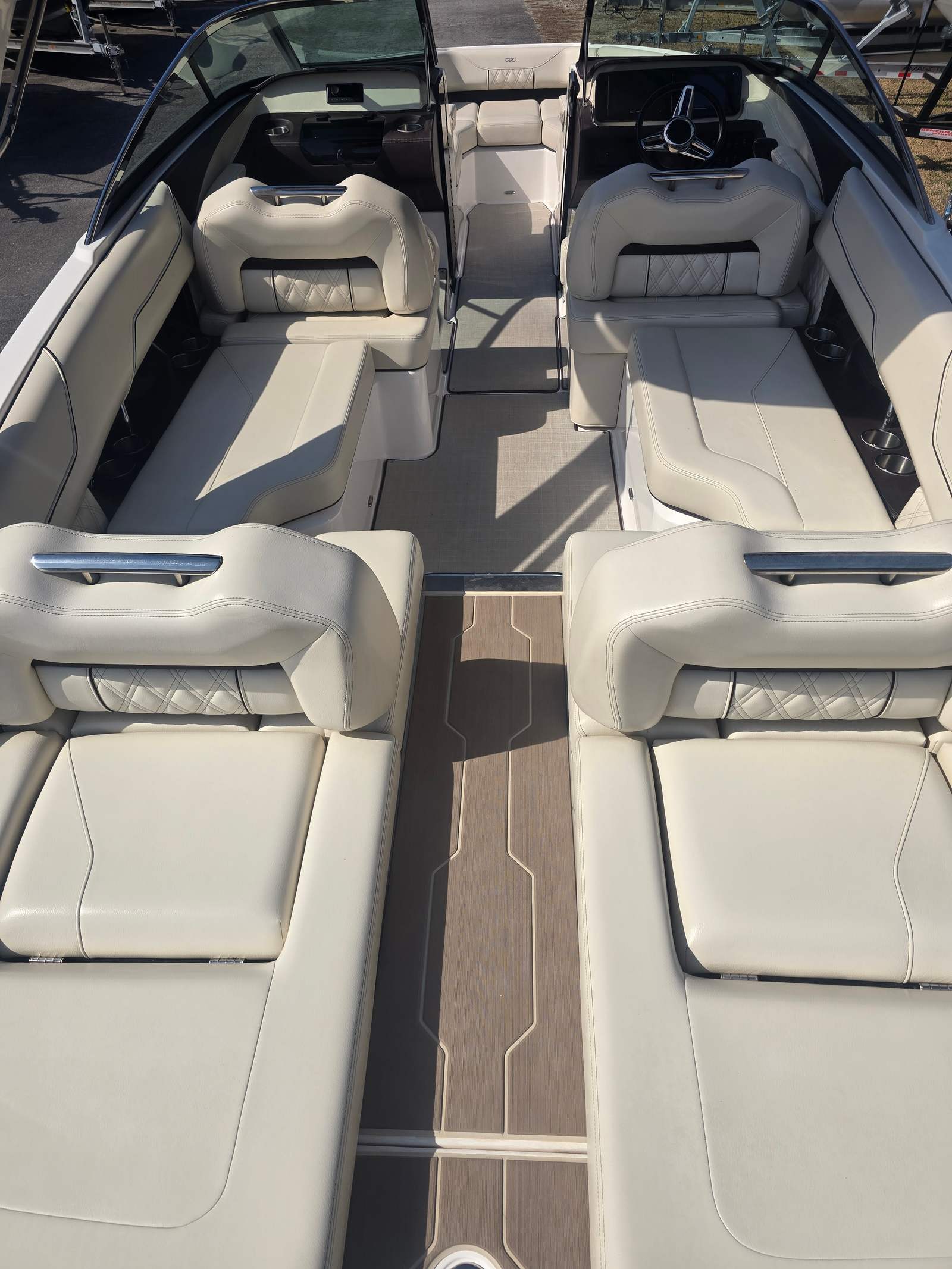 The 2022 Regal LS4 Bowrider is a testament to Regal’s commitment to quality and style. Measuring an impressive 24.42 feet in length, this boat provides ample space for relaxation and recreation. Its sleek profile and contemporary lines are accentuated by the eye-catching Tahiti Beach White hull, complemented by a Mediterranean Blue bootstripe and matching bottom color. The Mediterranean Blue canvas adds a touch of sophistication, while the River Rock accents create a refined and inviting atmosphere onboard. With only 220 engine hours, this used Bowrider remains in excellent condition, offering years of reliable enjoyment ahead.