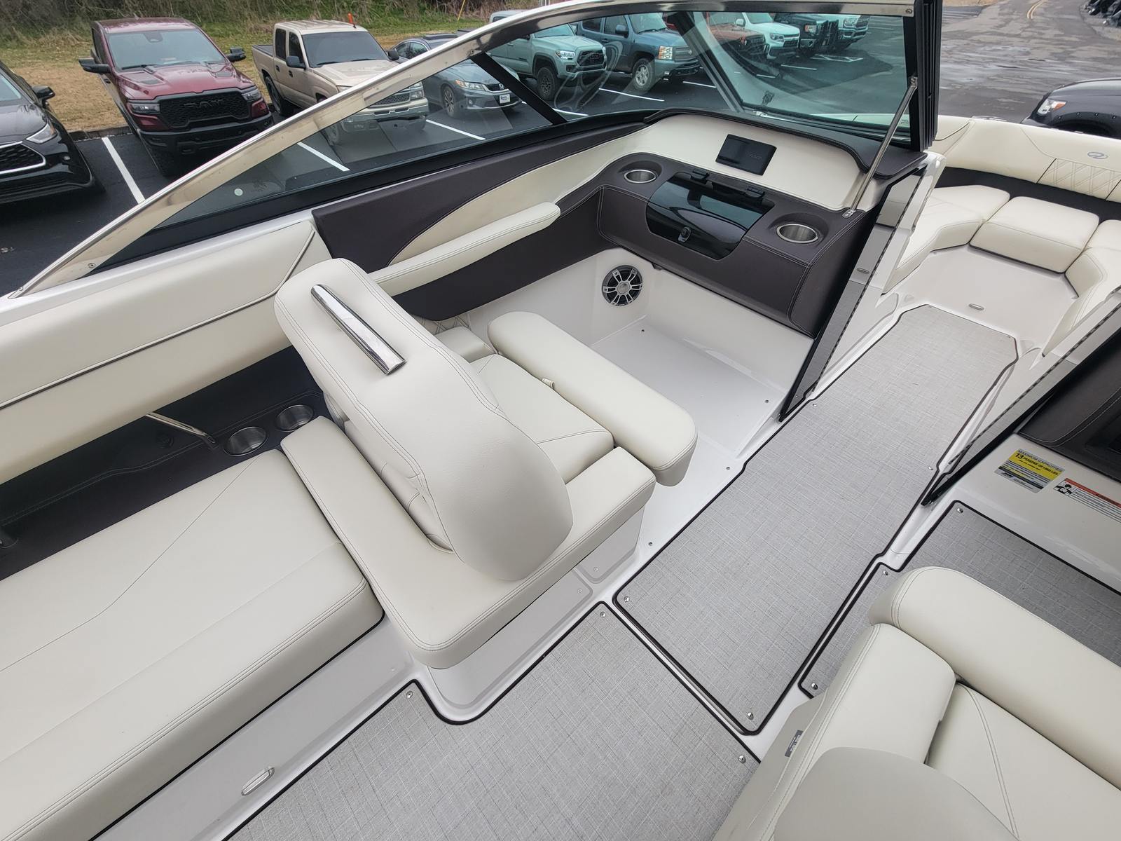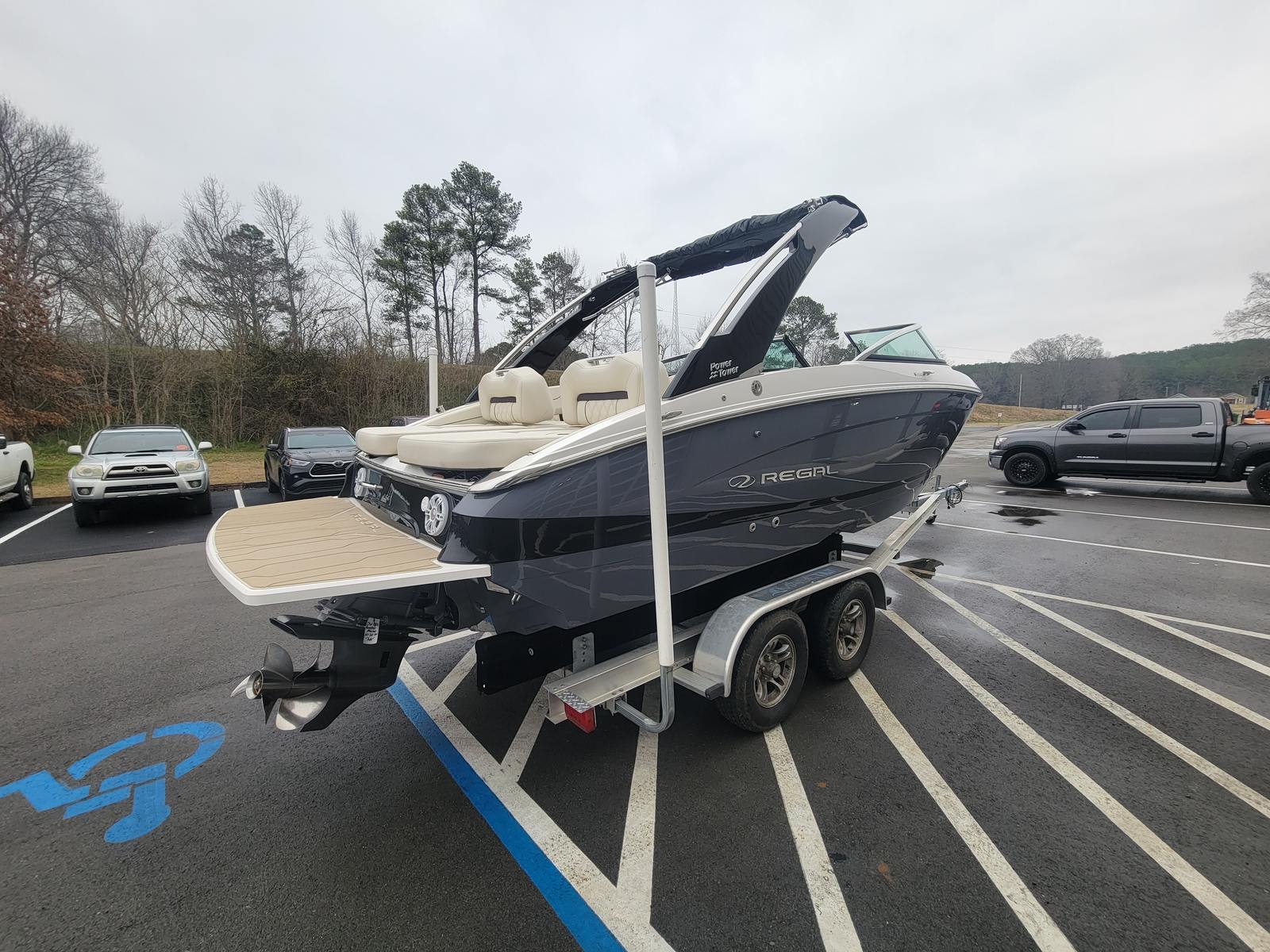 The 2025 Regal LS4 Bowrider is loaded with premium features designed to enhance your boating lifestyle. The striking Graphite hull color not only turns heads but also reflects the boat’s modern aesthetic. A stainless steel flag pole with a U.S. flag adds a touch of patriotic flair, perfect for festive occasions and holiday cruises.Step into the cockpit and experience the comfort of the Seagrass Mat in River Rock, offering a plush, non-slip surface that is both stylish and practical. The battery charger ensures your boat is always ready for action, while the blue underwater lighting creates a mesmerizing ambiance for evening cruises and dockside gatherings.Music lovers will appreciate the Stereo Performance & Lighting Package, delivering crystal-clear sound and dynamic lighting effects to set the perfect mood. The travel storage cover in black keeps your Regal LS4 protected when not in use, preserving its pristine condition. For added convenience and safety, the SeaDek swim platform provides a comfortable, slip-resistant area for swimming, boarding, or relaxing by the water’s edge.