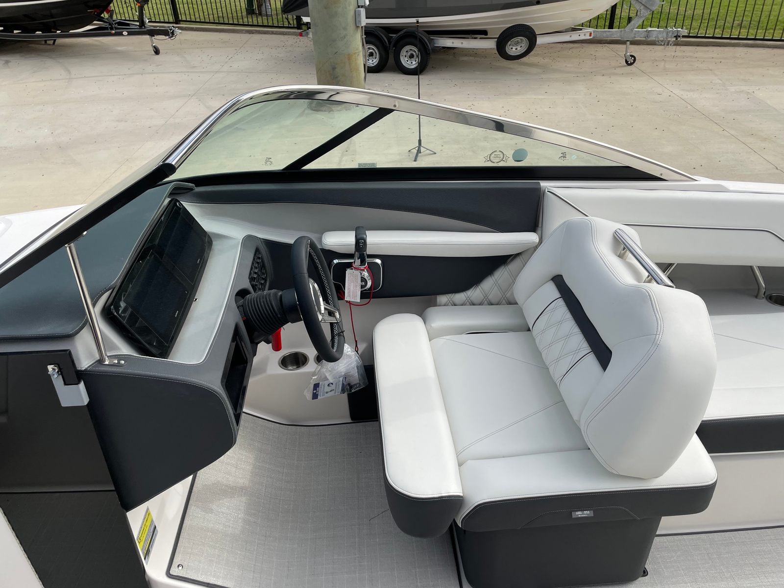 Under the hood, the Regal LS4 is powered by a robust single engine delivering an impressive 350 horsepower. This powerful setup ensures exhilarating acceleration, smooth cruising, and responsive handling, whether you’re slicing through waves or enjoying a leisurely ride. The advanced engineering behind the LS4’s propulsion system guarantees a thrilling yet controlled boating experience, making it ideal for water sports, day trips, or simply soaking up the sun. The dual battery switch with tray and cables, along with a battery charger, ensures you have reliable power for all your adventures, giving you peace of mind on every outing.