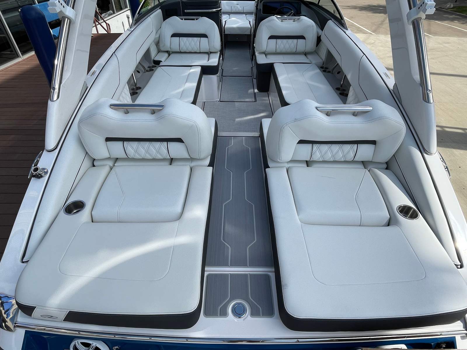 The 2026 Regal LS6 Surf is loaded with features designed to enhance your boating experience. The hull’s Tahiti Beach White color, paired with the Newport Blue bootstripe and Graphite bottom, ensures you will turn heads at every marina. The Titanium interior offers a luxurious and durable seating area, perfect for lounging or entertaining. A travel storage cover keeps your boat protected when not in use, while the cockpit seagrass mat adds a touch of comfort and style underfoot. The SeaDek swim platform provides a safe and comfortable area for swimmers and surfers to enter and exit the water with ease. For added convenience and peace of mind, the dual battery switch with tray and cables, along with a battery charger, ensures reliable power for all your adventures.