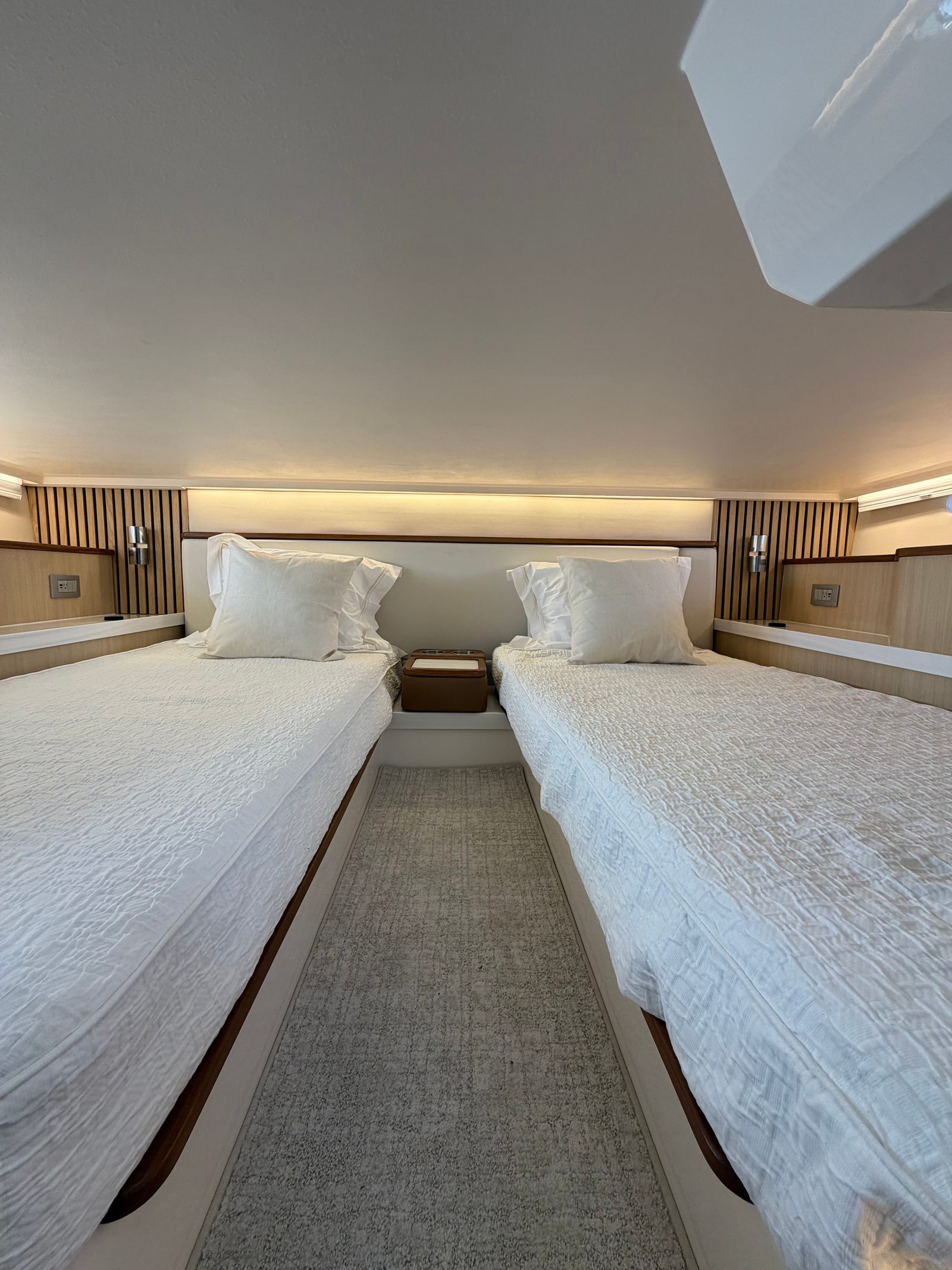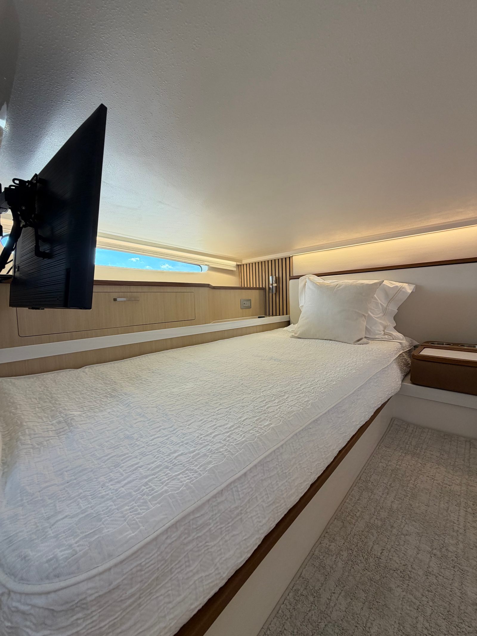 The Regal LX43 is designed with practicality in mind, offering features that make ownership both convenient and enjoyable. Its generous length provides ample storage space for gear, supplies, and personal items, allowing you to keep the deck clutter-free and organized. The yacht’s efficient engine setup contributes to better fuel economy, so you can spend more time exploring and less time refueling. Docking is made easier thanks to the LX43’s responsive handling and maneuverability, ensuring a hassle-free experience whether you’re arriving at a busy marina or anchoring in a secluded cove. The absence of bottom paint means less maintenance and a cleaner hull, preserving the yacht’s performance and appearance over time.