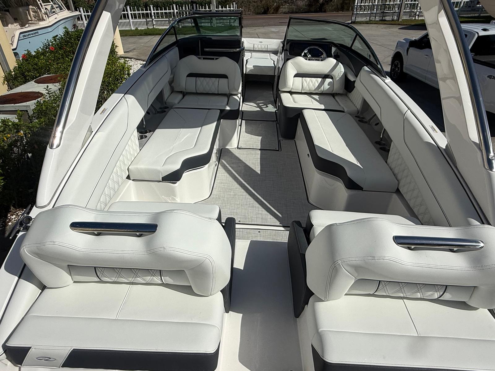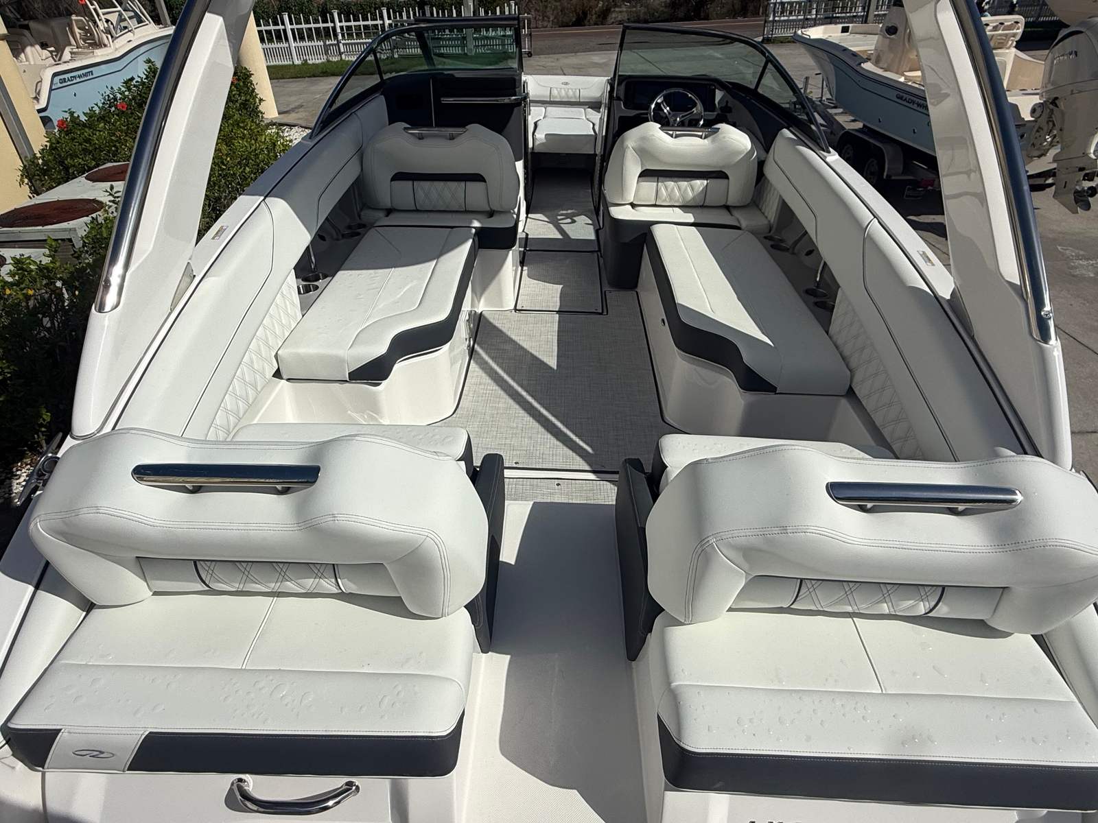 The Regal LX6 is loaded with premium features designed to enhance your boating experience. Bow and cockpit covers provide essential protection from the elements, keeping your boat looking pristine and ready for action. The manual bow and cockpit sunshade system, finished in a stylish steel gray canvas, offers customizable shade options, ensuring comfort during sunny days on the water. Step onto the cockpit seagrass mat and enjoy a soft, non-slip surface that adds a touch of elegance and practicality to the deck.For peace of mind and convenience, the LX6 includes a dual battery switch with tray and cables, as well as a battery charger, ensuring reliable power for all your onboard systems. The bow thruster makes maneuvering in tight spaces a breeze, while the transom shower and pressure water package provide refreshing convenience after a swim or water sports session. With these thoughtful features, the LX6 stands out as a top choice among bowrider boats for sale.