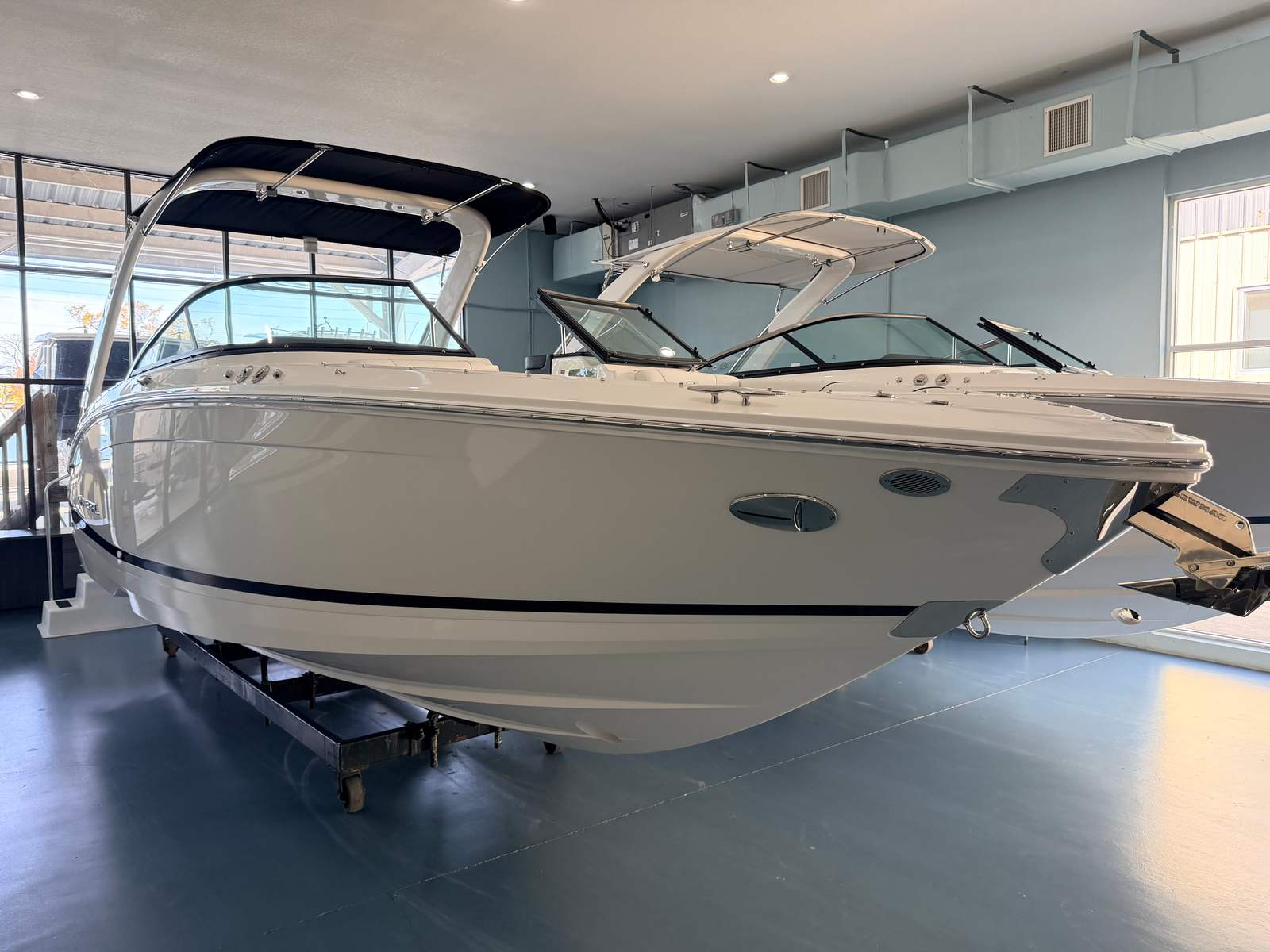 The 2026 Regal LX6 comes equipped with a range of special features designed to enhance your boating experience. The striking Tahiti Beach White hull and bottom, paired with a black bootstripe, create a visually stunning exterior that is sure to turn heads. The Titanium interior offers a modern, upscale feel, providing both comfort and durability for all your adventures.For added convenience and protection, the LX6 includes bow and cockpit covers, ensuring your boat stays clean and protected from the elements when not in use. The manual bow and cockpit sunshade system, finished in black canvas, allows you to create shaded areas for relaxation, making hot summer days more enjoyable. The cockpit seagrass mat adds a touch of luxury underfoot, while also being easy to clean and maintain.Practical features such as the dual battery switch with tray and cables, along with a battery charger, ensure reliable power management and peace of mind during every outing. These thoughtful additions make the LX6 not only stylish but also highly functional for boaters who value convenience and reliability.
