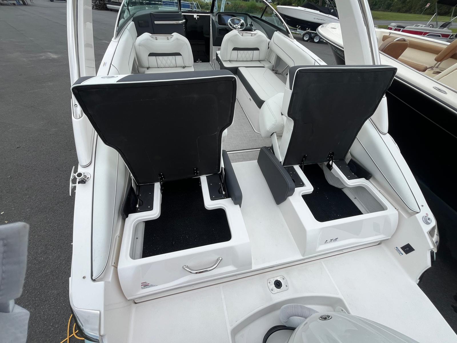 New 2026 Regal LX6 – Powered by a Yamaha F300 HP DEC, the LX6 is the ultimate expression of luxury, performance, and versatility in a 27’ bowrider. With Regal’s patented FasTrac Hull Design, this model delivers exhilarating performance, faster speeds, and improved fuel efficiency compared to the competition. The wide beam and premium layout create an expansive cockpit and bow area perfect for entertaining, watersports, or simply enjoying a sunset cruise in comfort. Combining sleek styling with advanced technology, the LX6 offers a true premium boating experience.
