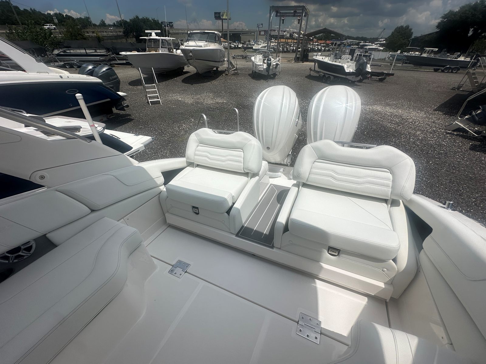 Power and precision define the performance of the Regal LX9. Equipped with twin Yamaha F250XSB2 engines in a crisp white finish, this bowrider delivers a combined 500 horsepower, ensuring exhilarating acceleration and smooth cruising at any speed. The advanced Yamaha engines are renowned for their reliability, efficiency, and quiet operation, allowing you to enjoy every moment on the water without compromise. Whether you are slicing through waves or gliding across calm lakes, the LX9’s responsive handling and robust power make every journey unforgettable.