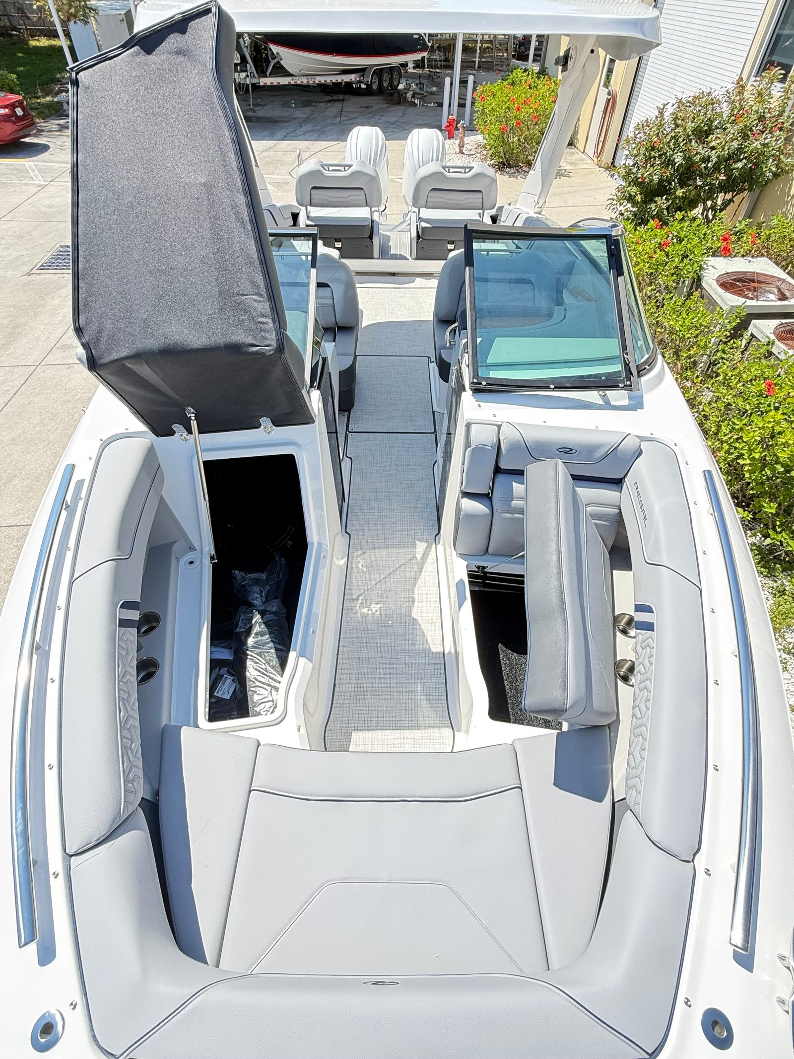 In summary, the 2026 Regal LX9 Ultimate is a remarkable bowrider boat for sale that combines style, performance, and versatility in one stunning package. With its twin 400-horsepower engines, eye-catching Steel Gray hull, Mediterranean Blue accents, and thoughtfully designed interior zones, this Regal boat for sale is ready to deliver unforgettable experiences on the water. The included bow and cockpit covers add an extra layer of convenience and protection, ensuring your investment remains in top condition.If you are ready to elevate your boating lifestyle and make lasting memories with family and friends, the Regal LX9 Ultimate is the perfect choice. Don’t miss your chance to own this exceptional bowrider—contact your local dealer today for more information and to schedule a viewing. Experience the thrill, comfort, and luxury that only a Regal can provide!
