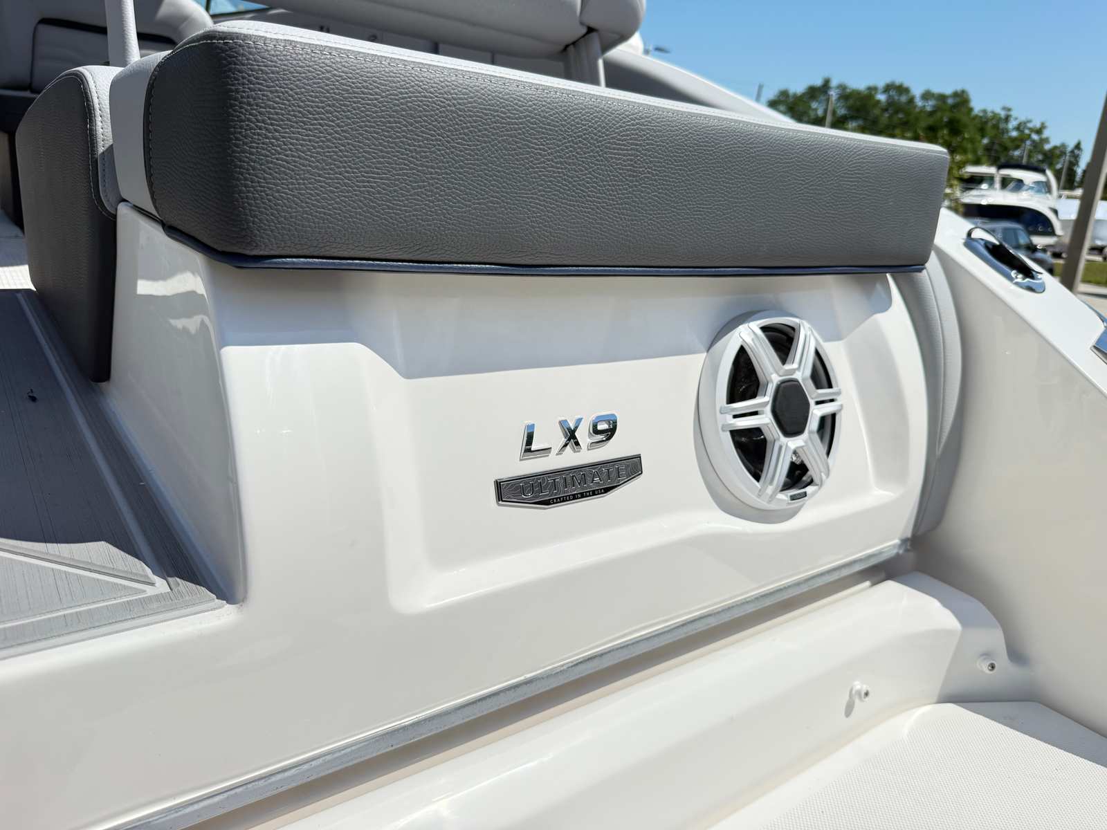 The Regal LX9 Ultimate is designed to impress with its array of special features and premium finishes. The hull color in Steel Gray, accented by a Mediterranean Blue bootstripe and a Tahiti Beach White bottom, creates a striking visual presence on the water. The interior zones are thoughtfully appointed with a combination of Lunar Gray - Chil and Graphite - Standard, offering a modern and inviting atmosphere. Additional zones feature Mediterranean Blue - Chil and Mediterranean Blue, enhancing the boat’s vibrant and upscale aesthetic.For added convenience and protection, the LX9 Ultimate includes bow and cockpit covers, ensuring your investment stays in pristine condition when not in use. Every detail of this bowrider has been meticulously crafted to deliver both style and functionality, making it a standout Regal boat for sale in today’s market.