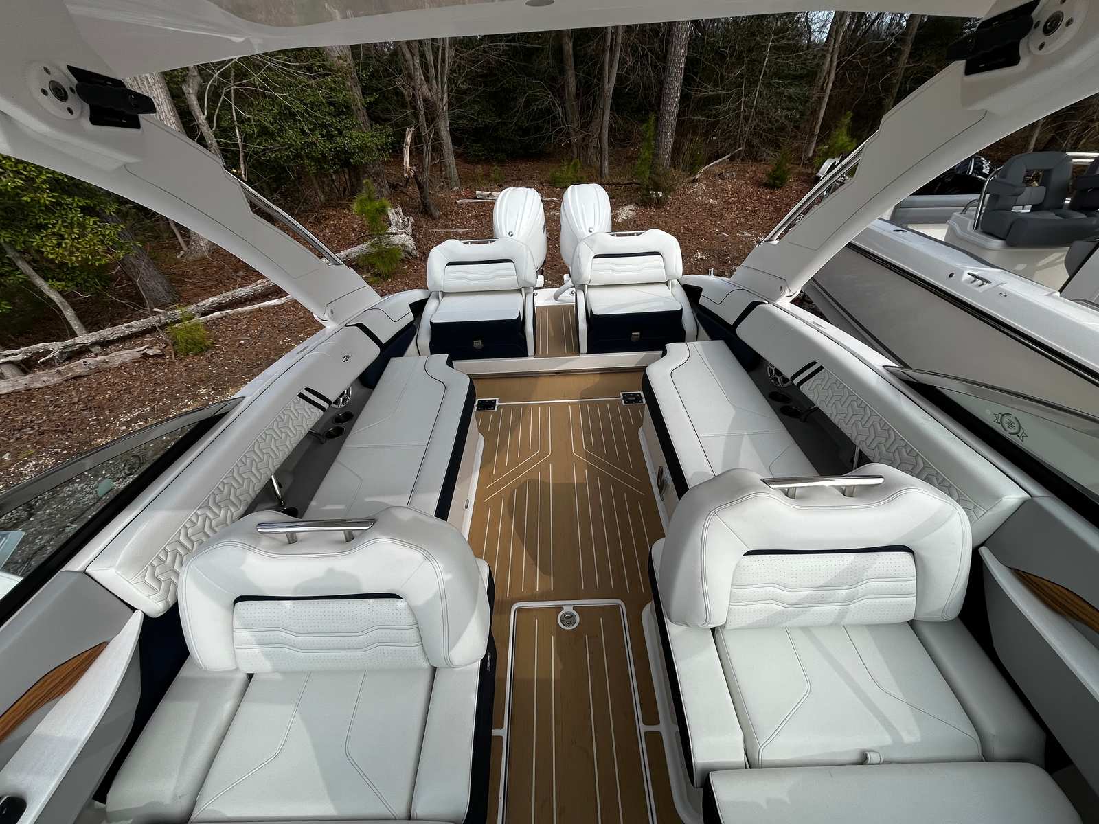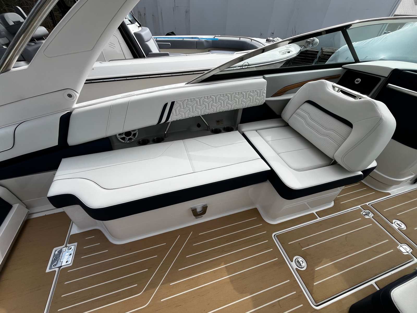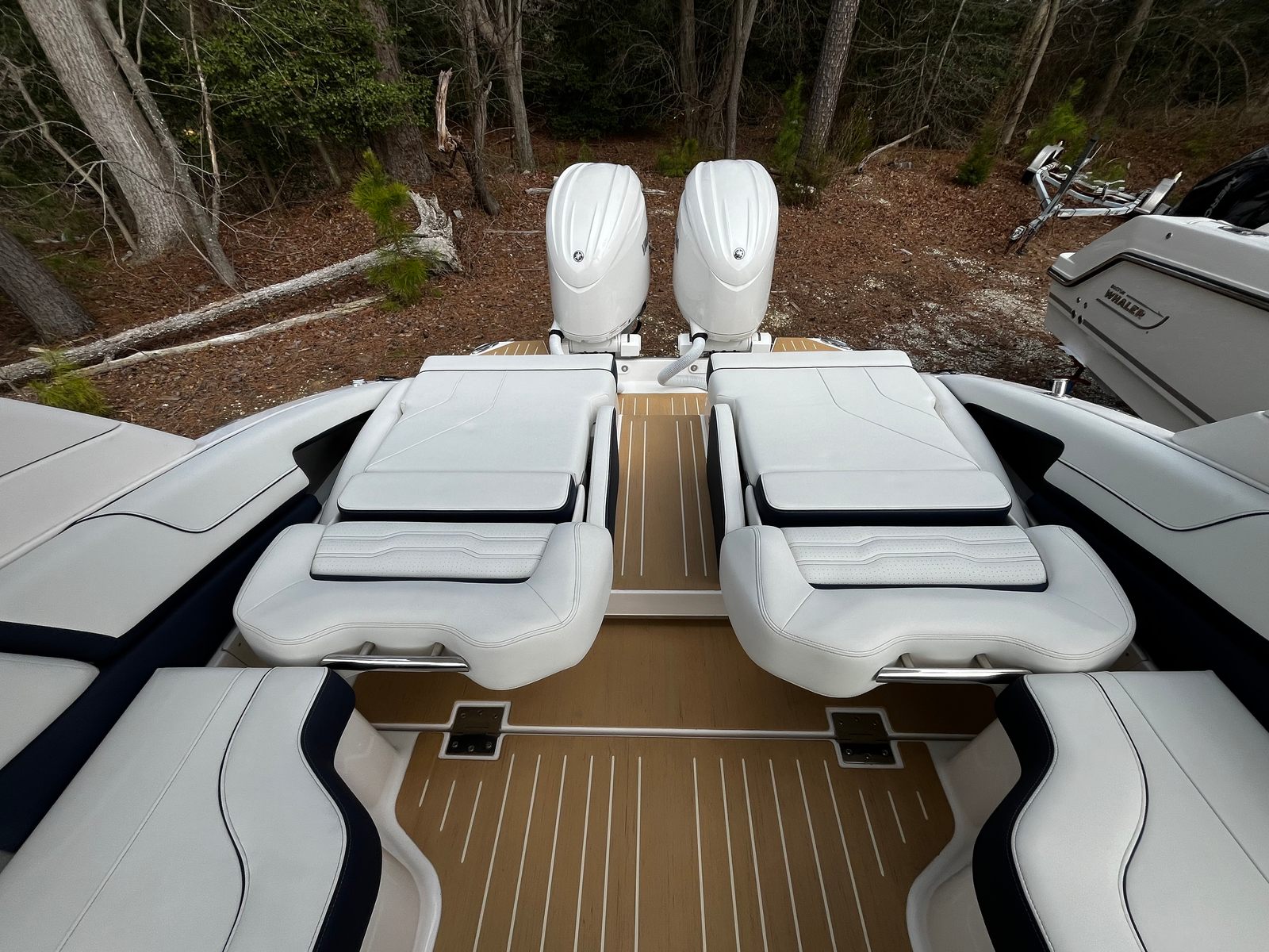 Hull Color – Tahiti Beach White with Mediterranean Blue Boot Stripe: A stunning, timeless color combination that radiates coastal sophistication.