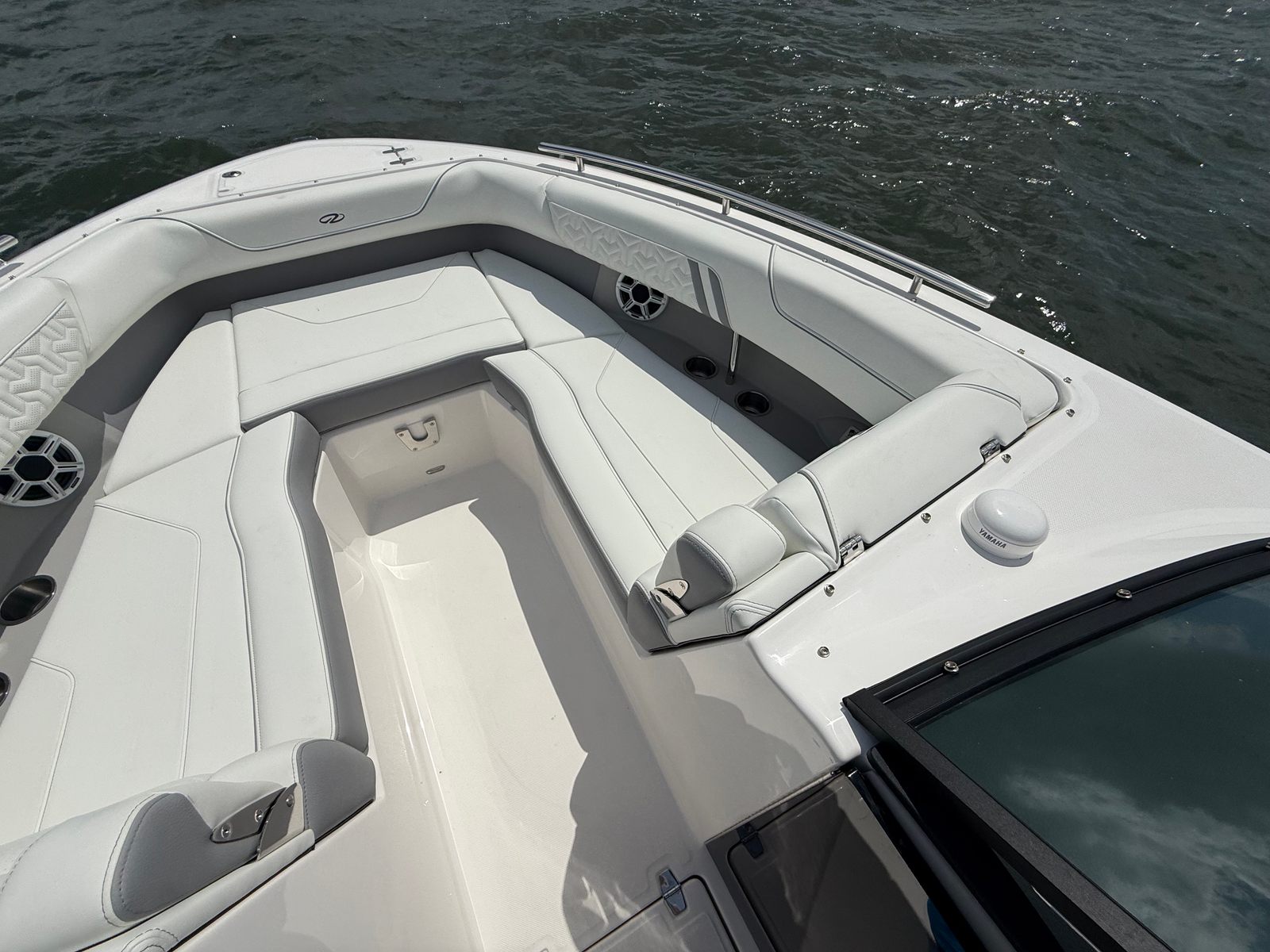 Power and precision are at the heart of the Regal LX9 Ultimate. Equipped with twin Yamaha 250HP engines featuring integrated steering in a striking white finish, this bowrider offers a total of 500 horsepower. The dual-engine setup ensures robust acceleration, smooth handling, and exceptional maneuverability, making every ride both thrilling and secure. Whether you are slicing through waves or gliding across calm waters, the LX9 Ultimate’s performance capabilities are designed to impress even the most discerning boating enthusiasts. The integrated steering system enhances control, allowing for effortless navigation and docking, while the advanced indicators for trim tabs provide real-time feedback for optimal ride adjustment.