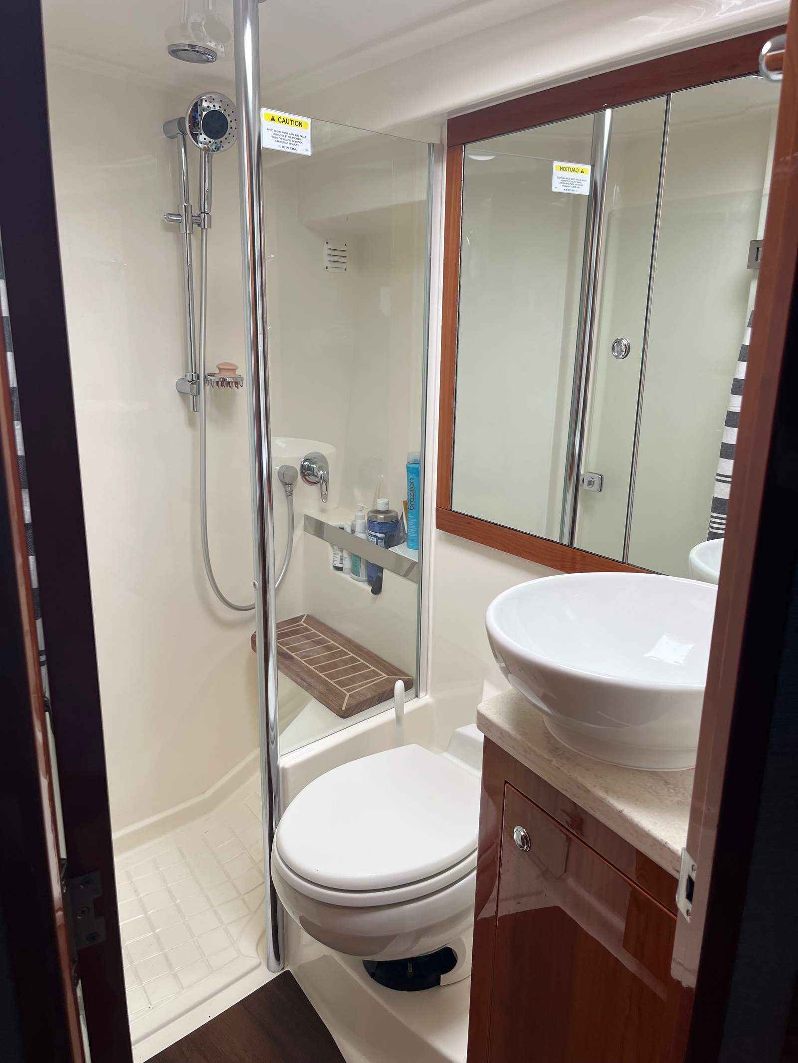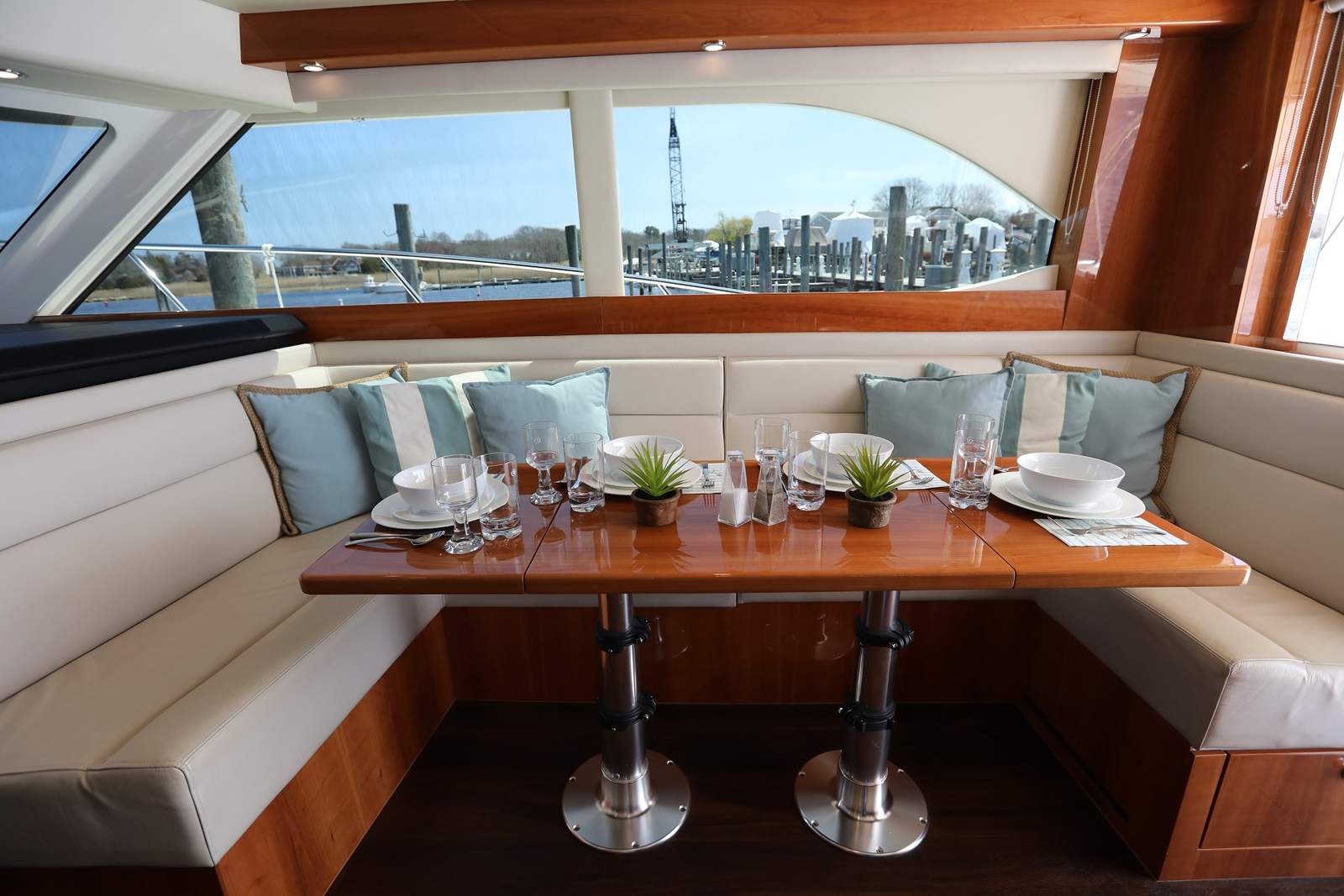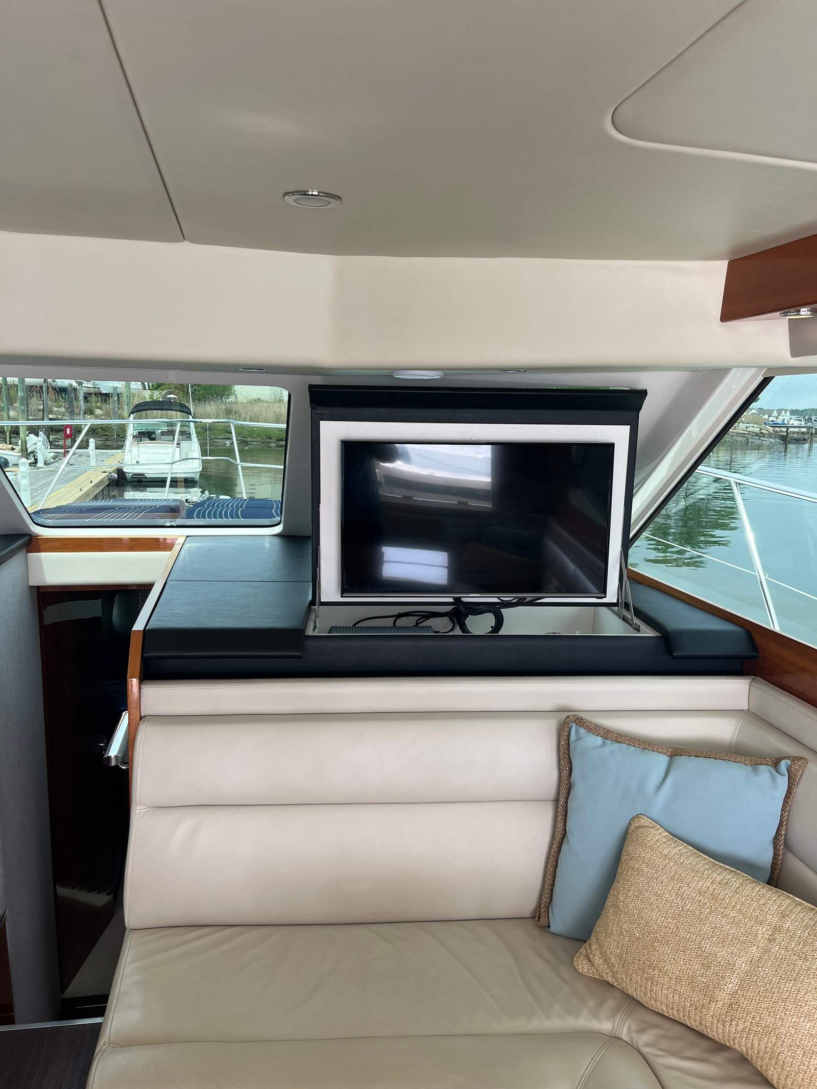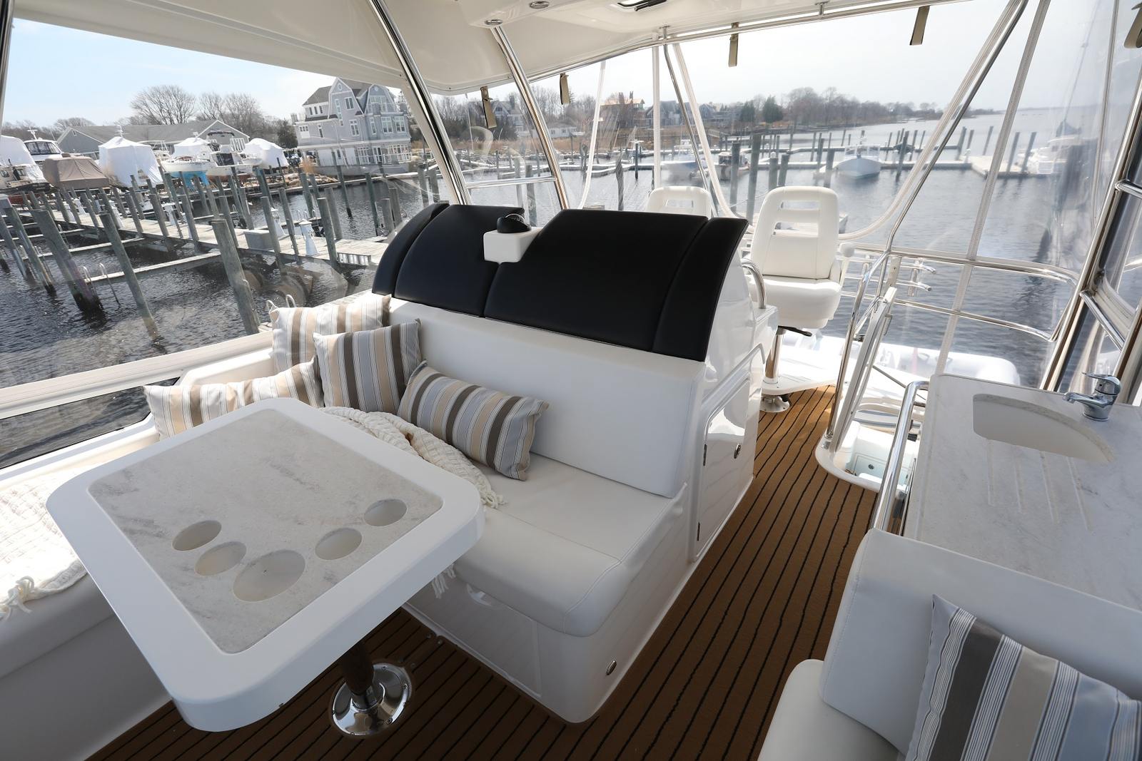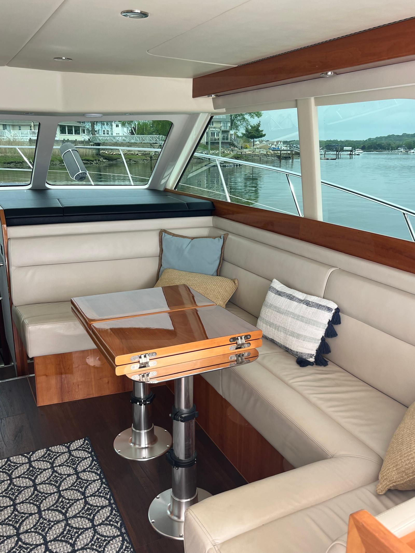 Powering the Riviera 43 Flybridge are two robust engines, delivering a combined 870 horsepower. This impressive power package ensures smooth acceleration, responsive handling, and the ability to cruise comfortably at a variety of speeds. Whether you are navigating coastal waters, exploring offshore destinations, or simply enjoying a leisurely cruise, the performance of this flybridge boat is sure to impress. The twin-engine configuration not only enhances maneuverability but also provides peace of mind for longer journeys, making this Riviera boat for sale a reliable choice for both seasoned captains and newcomers alike.