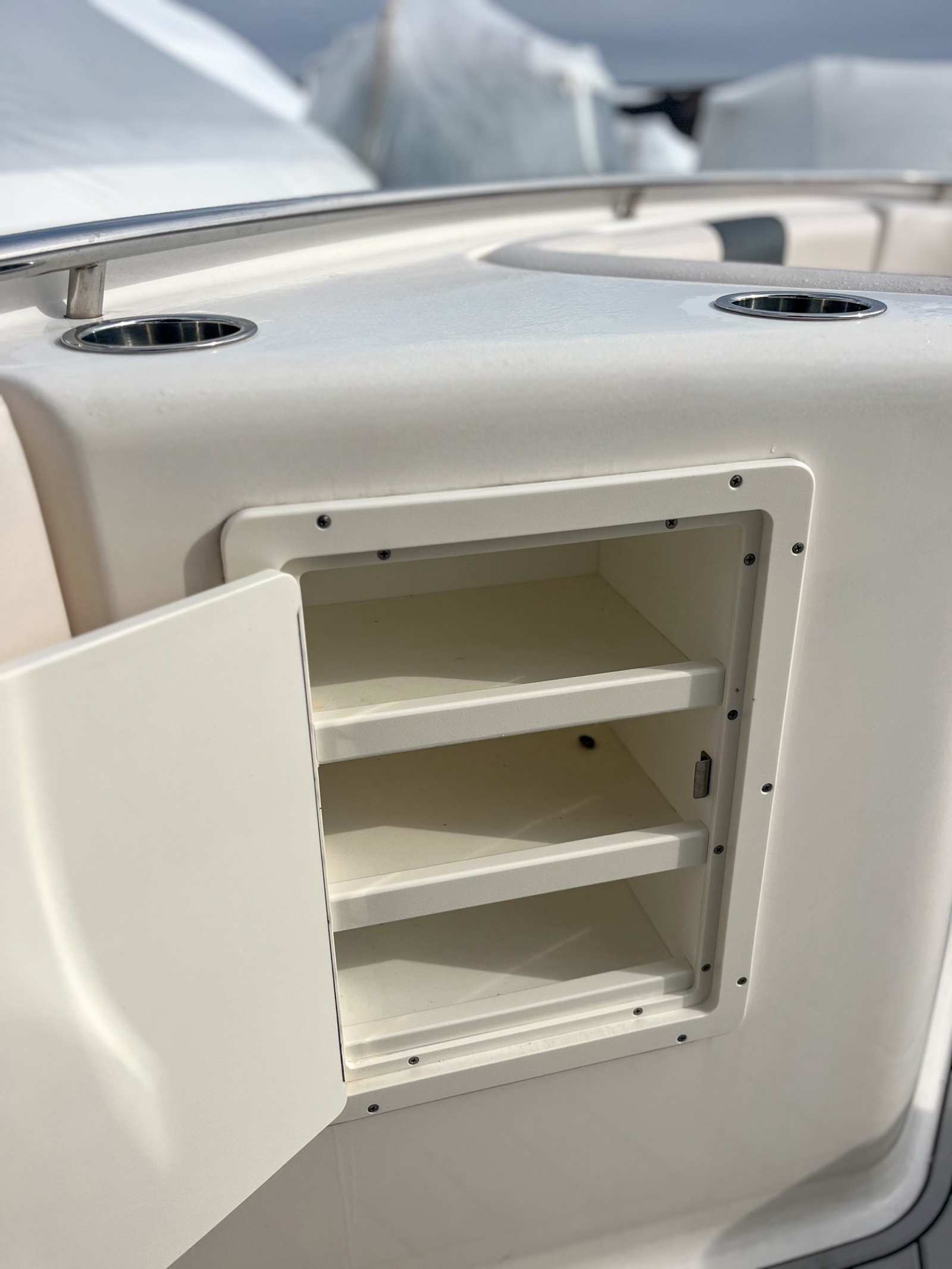 This center console boat for sale is as practical as it is enjoyable. The thoughtful layout provides ample storage for fishing gear, water toys, and personal items, keeping the deck clutter-free and organized. The ease of docking and maneuverability make it suitable for both seasoned boaters and those new to the water. Fuel efficiency is enhanced by the modern engine design, allowing you to spend more time on the water and less time refueling. The Robalo 302’s versatility means it can easily transition from a serious fishing platform to a comfortable family cruiser.