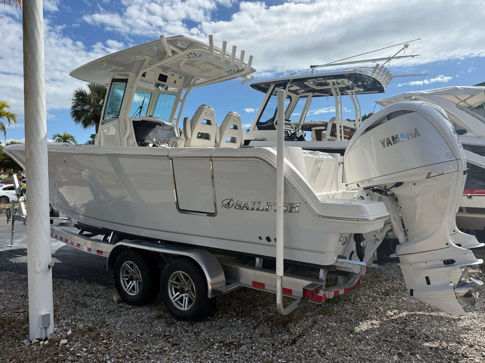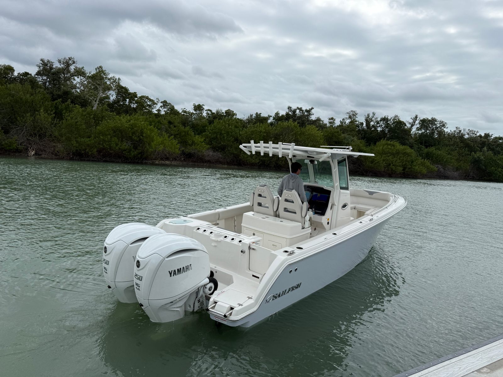 Just in on trade! 2025 Sailfish 272 with twin Yamaha 250's with only 34 hours and Warranty until 02/26/2031!!!! LIKE NEW!