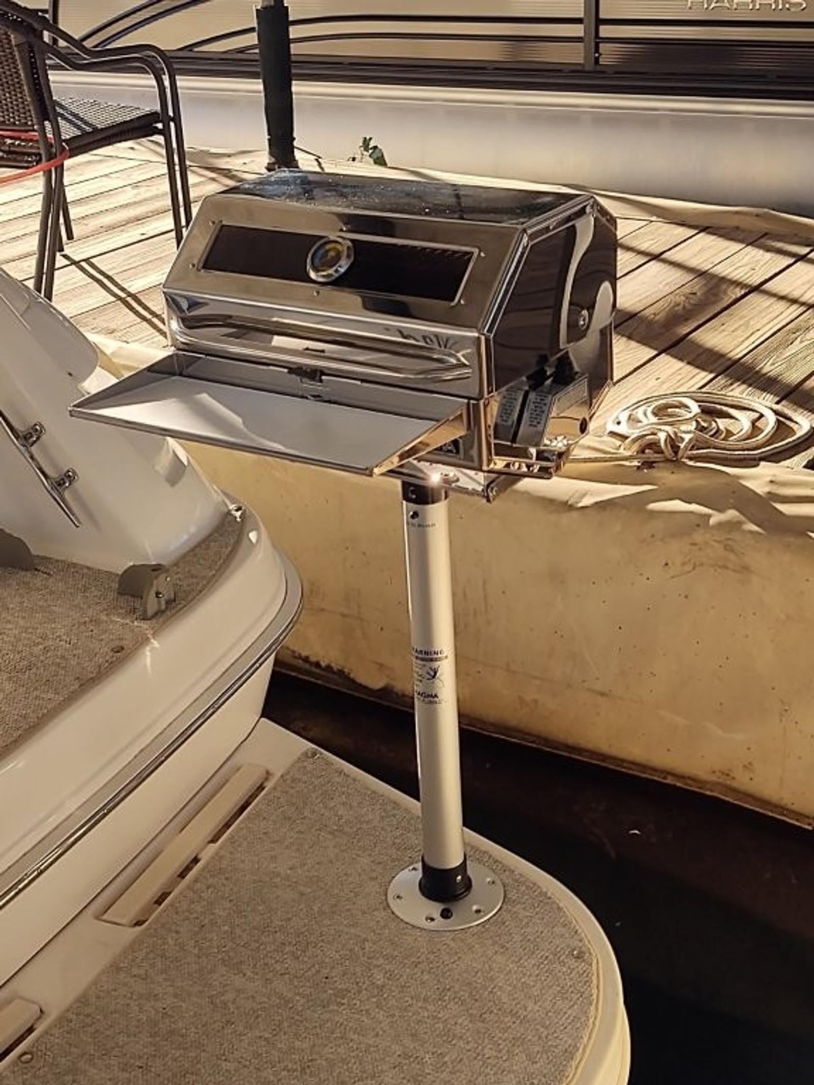 Inside the cabin, the upgraded hardwood bamboo flooring gives the interior a clean, updated look while remaining durable and easy to maintain. The Sundancer layout provides a roomy salon, full galley, forward berth, and private mid-cabin sleeping area, making it easy to host family or guests overnight. Large windows and an open design help keep the cabin bright and comfortable.
