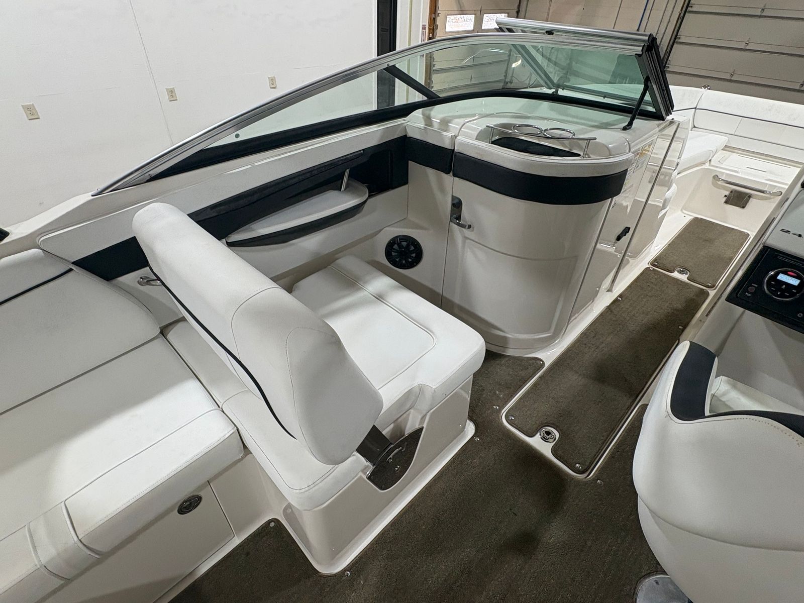 The 2014 Sea Ray Sundeck 240 stands out as a premium used bowrider, measuring just over 24 feet in length. Its sleek profile and contemporary design make it a head-turner at any marina or on any lake. With a single engine and only 199 hours of use, this boat has been well cared for and is poised to deliver many more seasons of enjoyment. The Sundeck 240’s spacious layout ensures there’s plenty of room for family and friends, making it an ideal choice for those who love to entertain or spend quality time on the water.