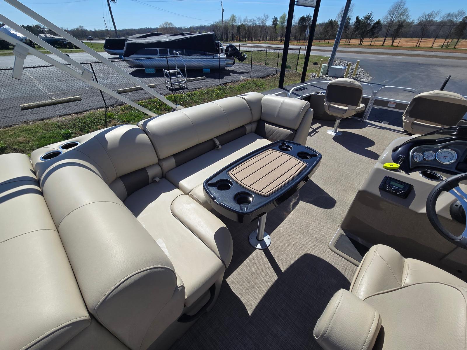 The Sun Tracker Fishing Barge 20 DLX is thoughtfully designed to maximize both comfort and functionality. Its spacious deck layout offers ample room for family, friends, and all your gear. The pontoon’s nearly 22-foot length provides plenty of space for socializing, fishing, or relaxing under the sun. The sturdy construction and high-quality materials ensure durability and longevity, making this pontoon boat a smart investment for years of enjoyment.Special features of the 2023 Sun Tracker Fishing Barge 20 DLX include a versatile deck plan that accommodates both fishing and leisure activities. The wide, stable platform is perfect for casting lines, setting up chairs, or enjoying a picnic on the water. With its comfortable seating arrangements, you and your guests can relax in style while taking in the scenic views. The boat’s intuitive layout makes it easy to move around, ensuring everyone on board has a great time.