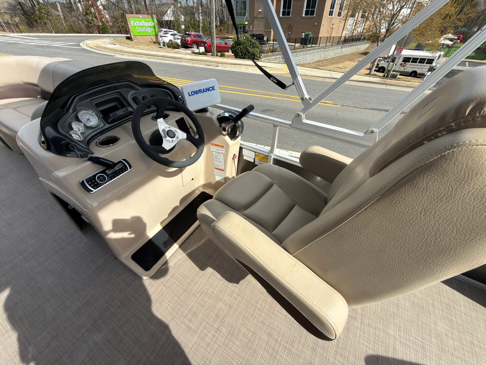 The Sun Tracker Party Barge 20 DLX is designed with comfort and convenience in mind. Its nearly 22-foot length offers ample deck space, allowing you and your guests to move freely and enjoy every moment on board. The open layout is perfect for socializing, with plenty of seating for family and friends. The pontoon’s sturdy construction and thoughtful design ensure a stable, safe ride, even when the water gets a little choppy.Special features of the Party Barge 20 DLX include plush, comfortable seating that invites you to relax and unwind, as well as a spacious deck that is ideal for entertaining. The pontoon’s layout is optimized for both relaxation and activity, making it easy to switch from sunbathing to fishing or from a quiet cruise to a lively party. The durable flooring is easy to clean and maintain, ensuring your boat looks great season after season.
