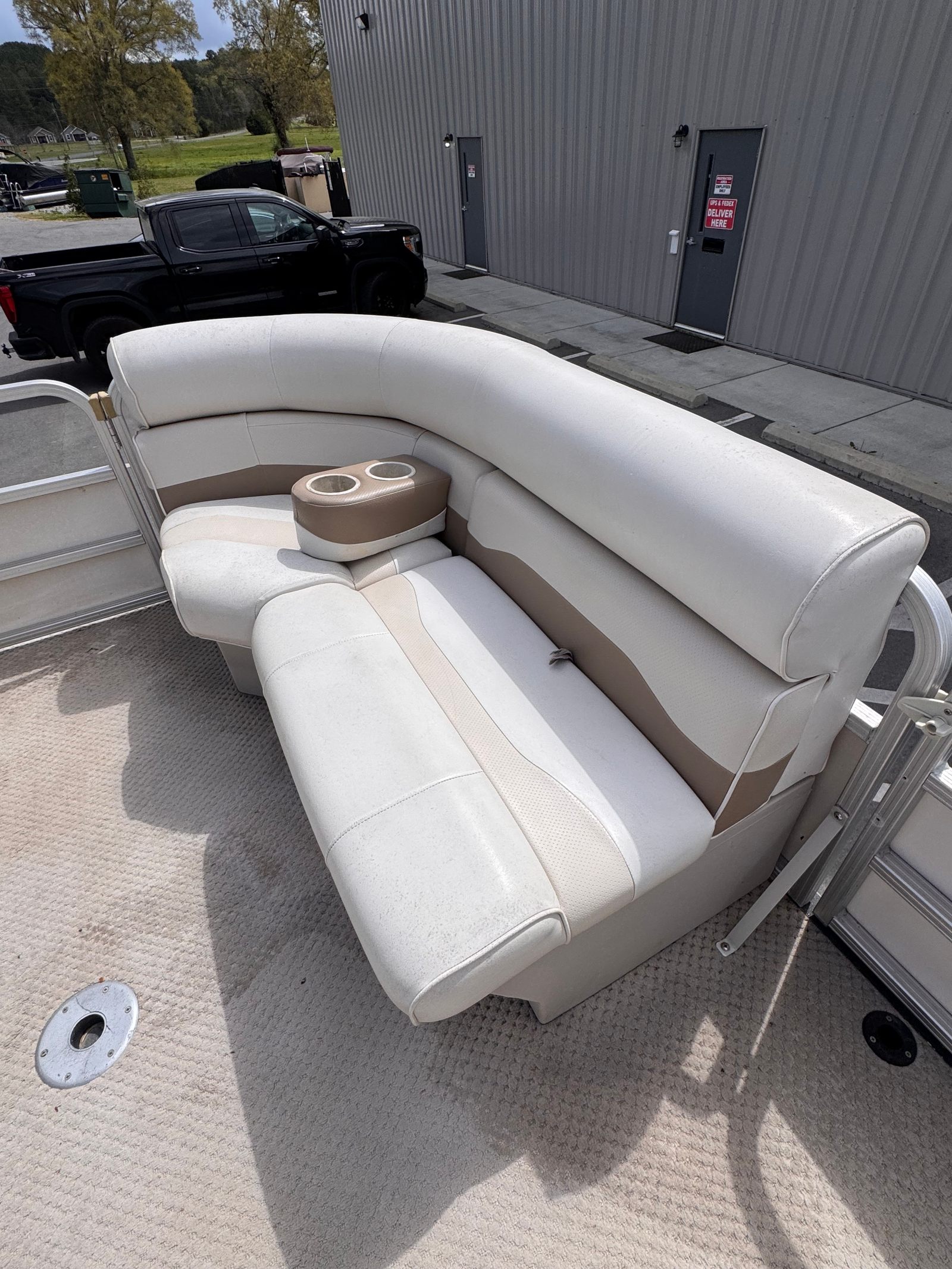 Owning a Sunchaser Cruise pontoon boat opens up a world of recreational possibilities. The spacious deck is perfect for hosting picnics, sunbathing, or playing games with the kids, while the stable platform ensures everyone feels safe and comfortable on board. Pontoon boats are renowned for their smooth, steady ride, making them an excellent choice for families with children or anyone who prefers a more relaxed boating experience. The 23-foot length of this Sunchaser boat for sale means there’s plenty of room for coolers, water toys, and all the essentials you need for a full day of fun on the water.The social aspect of pontoon boating is one of its greatest joys. With ample seating and an open layout, the Sunchaser Cruise encourages conversation, laughter, and shared memories. Whether you’re anchoring at a sandbar, drifting along a quiet shoreline, or tying up with friends for a floating party, this pontoon is designed to bring people together and create unforgettable moments.
