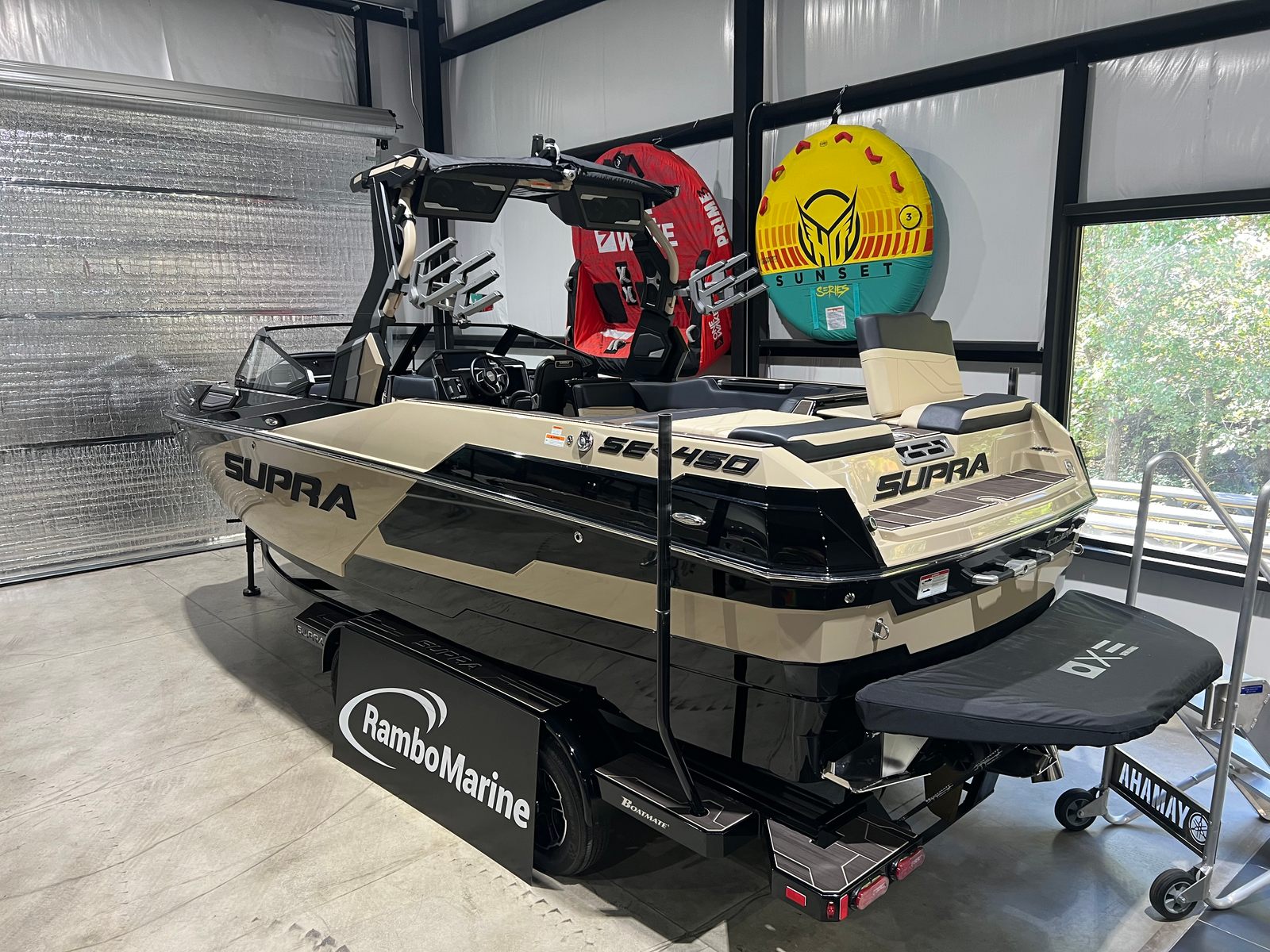In summary, the 2024 Supra SE 450 is a top-tier Ski & Wakeboard boat for sale that combines power, style, and versatility. With its impressive 410-horsepower engine, spacious 24.5-foot layout, and advanced wake system, this used Supra boat for sale is ready to elevate your time on the water. Enjoy the comfort, convenience, and excitement that come with owning a Supra SE 450, and discover why it’s the preferred choice for water sports enthusiasts everywhere. Don’t miss the opportunity to make this exceptional boat yours – contact the dealer today to learn more and start your next adventure!