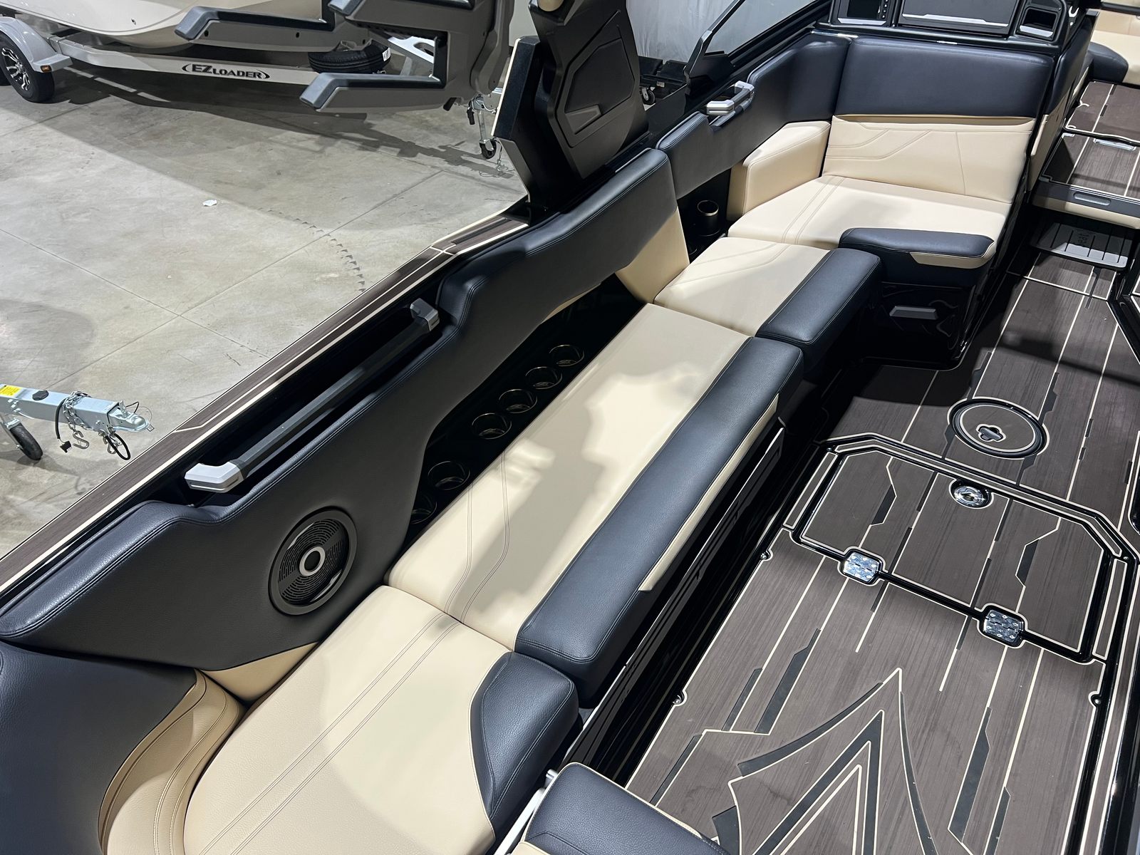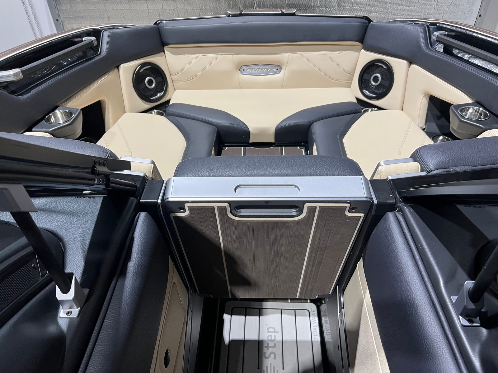 The Supra SE 450 is loaded with features designed to enhance your time on the water. Its spacious 24.5-foot layout provides plenty of room for friends, family, and all your water sports equipment. The boat’s sleek profile and modern styling are complemented by high-quality materials and attention to detail throughout the interior and exterior. Special features include a state-of-the-art wake system that allows you to customize the size and shape of your wakes, ensuring optimal conditions for every rider. The intuitive controls and ergonomic seating make operation effortless, while the advanced audio system lets you enjoy your favorite tunes as you cruise or ride.