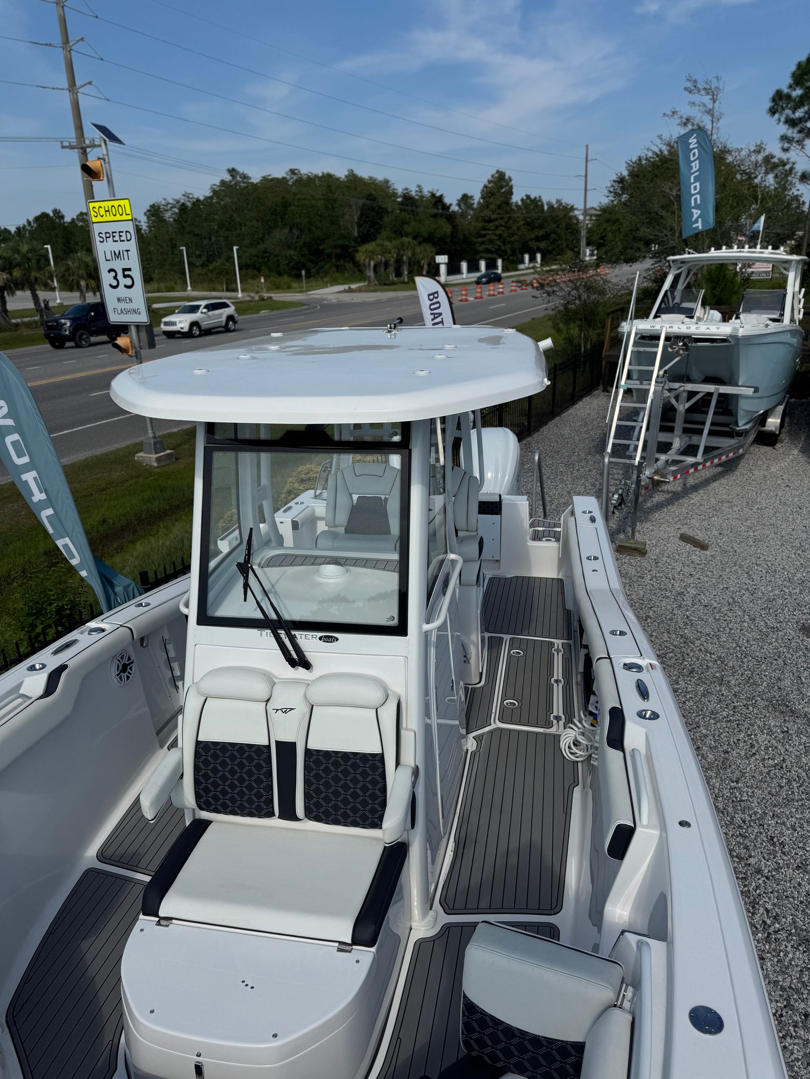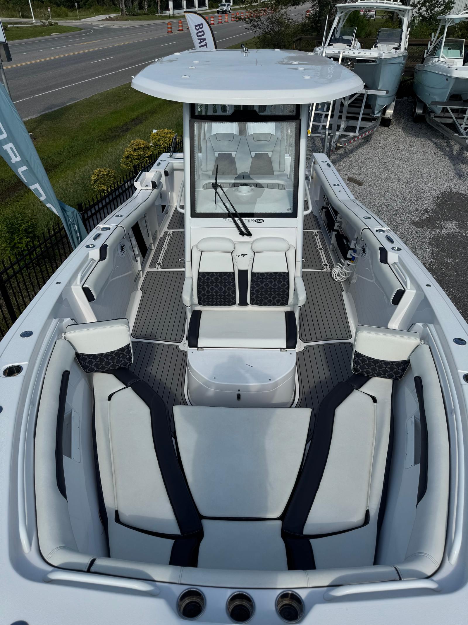 2023 TIDEWATER 292 CC ADVENTURE. POWERED WITH TWIN YAMAHA 300'S CUSTOM PAINTED TO MATCH. ONLY 106 HOURS. ELECTRONICS PACKAGE INCLUDES TWIN GARMIN 8616 CSV'S, J.L.AUDIO SOUND SYSTEM WITH SUB. ELECTRONIC BOW TABLE WITH FILLER CUSHION. SEA DECK FLOORING THROUGHOUT. VACUFLUSH TOILET, BOW SHADE, UNDERWATER LIGHTS, WINDLASS ANCHOR.