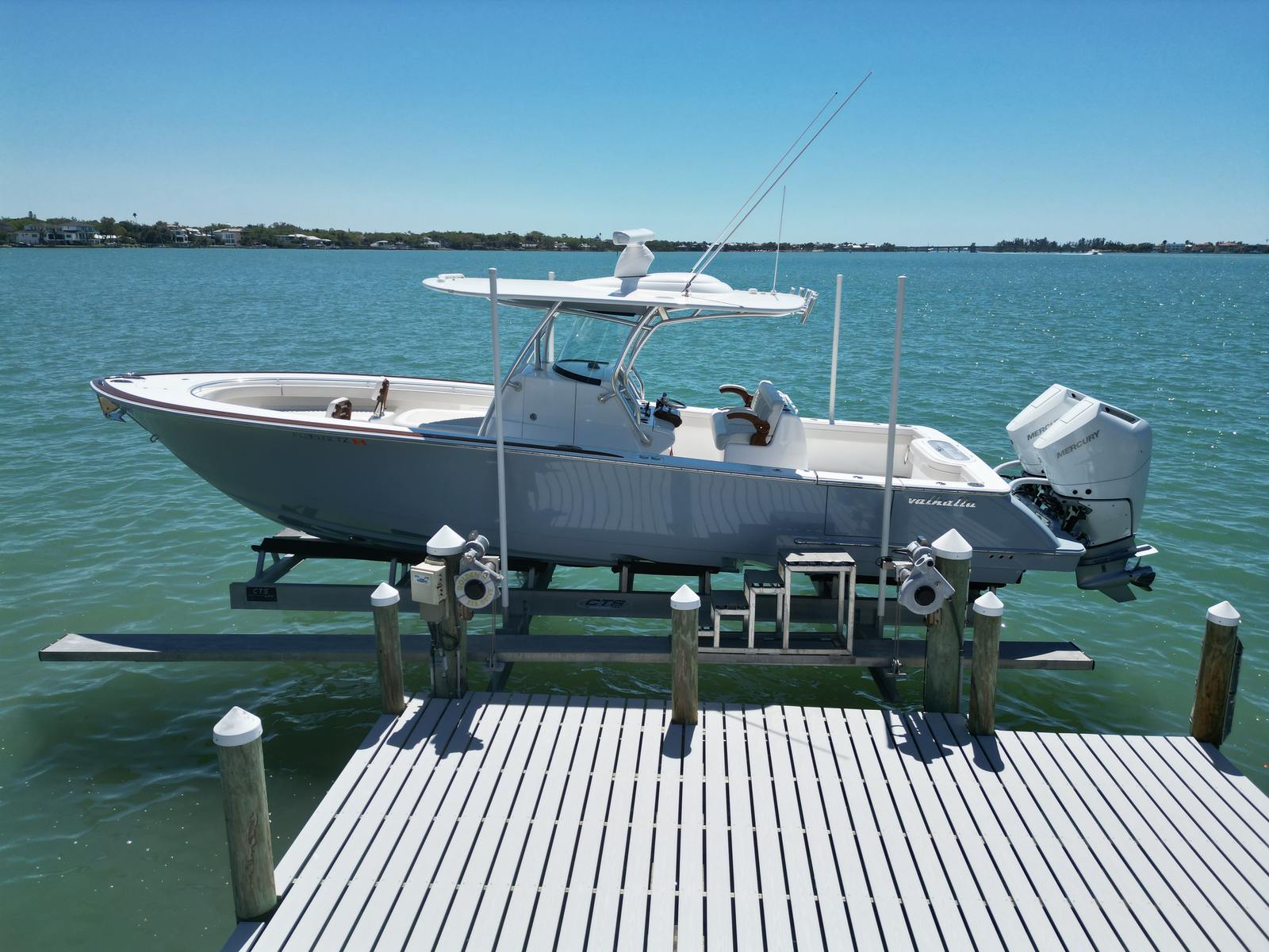 Powered by twin engines delivering a total of 800 horsepower and only 46 engine hours, the V33 promises exhilarating performance and reliability for every outing. The patented Stepped-V Ventilated Tunnel delivers the softest, driest, and most efficient ride of any center console in this size range. This V-33 possesses big-boat technology. It is loaded with nearly every option available including a Seakeeper 2 and Zipwake trim tabs to further improve the legendary Valhalla ride. The V-33 was designed for maximum live well and fish box capacity. A standard 52-gallon transom live well anchors the cockpit, and five overboard-draining in-deck fish boxes from 32 to 98 gallons are strategically positioned so you’re never more than a half-step from a home for your catch. The hardtop package comes with an assortment of accessories (Lumitec spreader lights, a six-rod rocket launcher and overhead electronics and radar pods) that’ll keep you battle-ready 24/7.