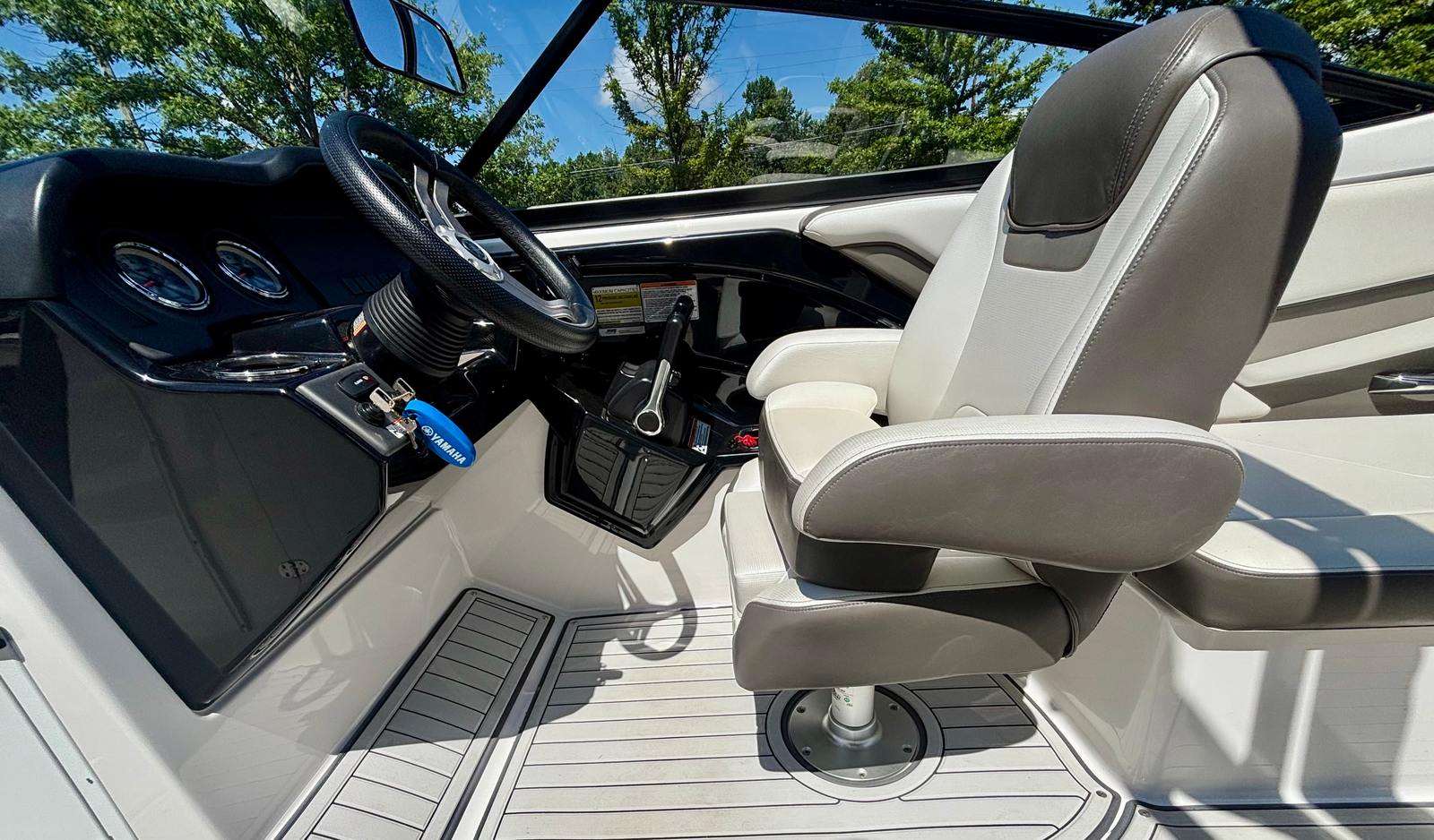 Powering the Yamaha 242 LTD are two robust engines, delivering a combined 360 horsepower. With only 85 engine hours, these engines promise reliability and longevity, ensuring you can enjoy countless adventures ahead. The jet propulsion system provides smooth acceleration, agile handling, and precise control, making this jet boat for sale ideal for both seasoned boaters and newcomers alike. The twin-engine setup enhances maneuverability, allowing for effortless docking and tight turns, while the impressive horsepower ensures exhilarating speed and performance on open water.