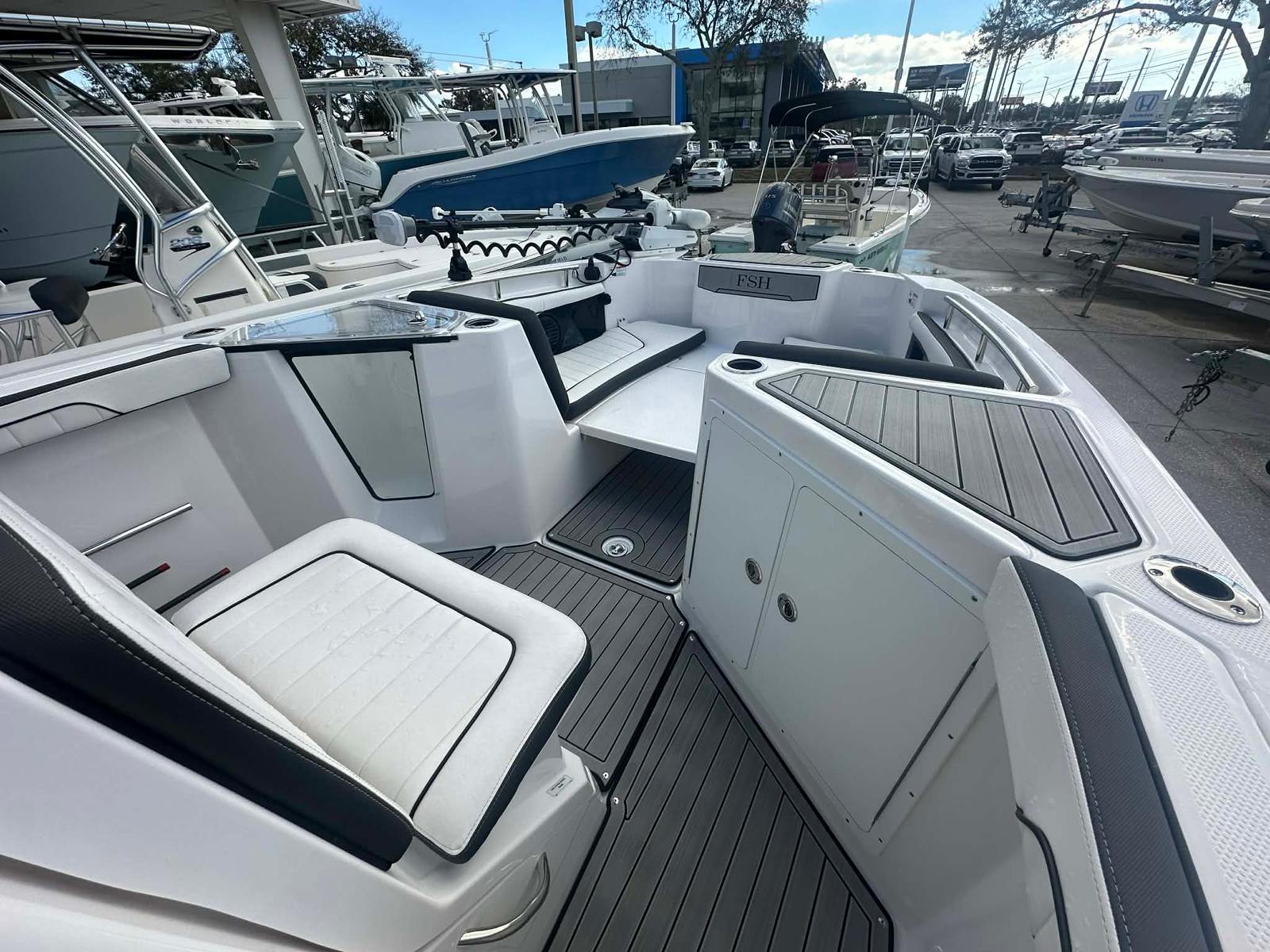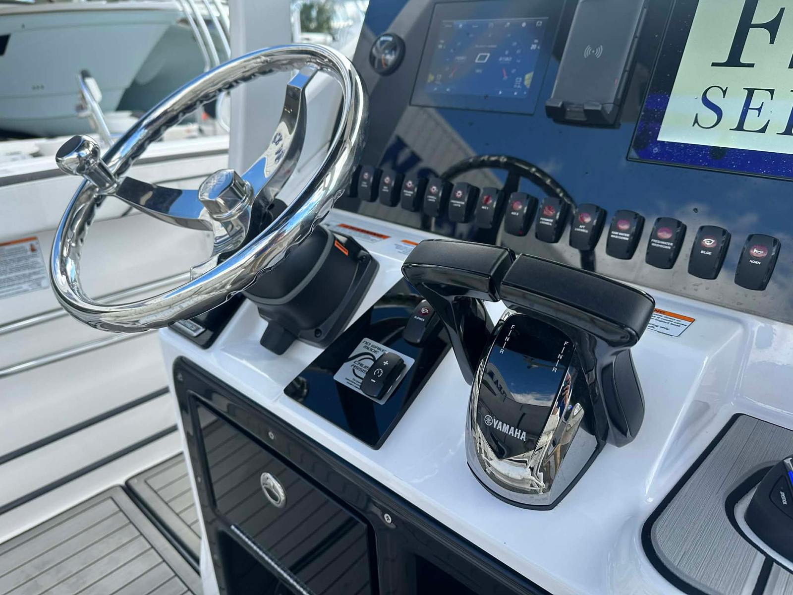 The Yamaha 255 FSH Sport is packed with features designed to enhance your time on the water. Its spacious 24-foot layout provides ample room for passengers, gear, and activities. The dual-engine setup not only boosts performance but also adds a layer of reliability and safety, ensuring peace of mind during every outing. The innovative jet propulsion system eliminates the need for exposed propellers, making it safer for swimmers and ideal for shallow-water exploration. With Yamaha’s reputation for quality and durability, this used Yamaha boat for sale is built to withstand the rigors of frequent use while maintaining its sleek appearance and top-tier performance.