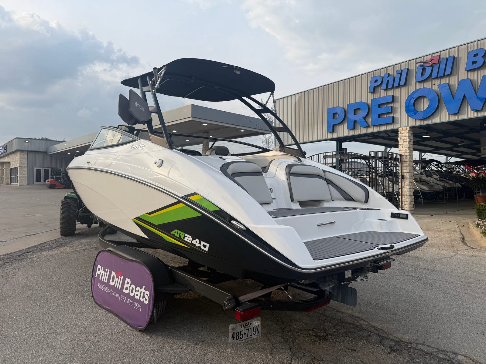 The Yamaha AR240 is as practical as it is fun. Its jet drive system makes docking and maneuvering in tight spaces a breeze, while the shallow draft allows you to explore areas that are off-limits to deeper-hulled boats. The boat’s efficient engines help maximize fuel economy, so you can spend more time enjoying the water and less time refueling. The spacious layout provides plenty of room for gear, coolers, and water sports equipment, making it easy to prepare for a full day of adventure. Whether you’re planning a quick afternoon escape or a full weekend outing, the AR240 adapts to your needs with ease.