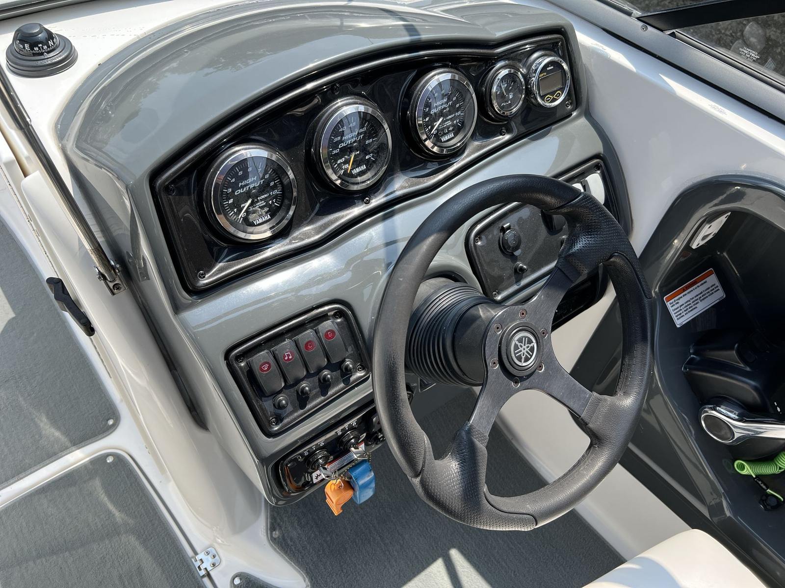 The Yamaha SX230 is engineered with features that enhance both performance and comfort. Its 23-foot length offers ample space for passengers, gear, and recreational equipment. The innovative jet propulsion system not only boosts performance but also increases safety, as there are no exposed propellers. The boat’s layout is designed for socializing, with comfortable seating arrangements that allow everyone on board to relax and enjoy the ride. The helm is thoughtfully arranged for easy operation, giving the captain full control and confidence on the water.